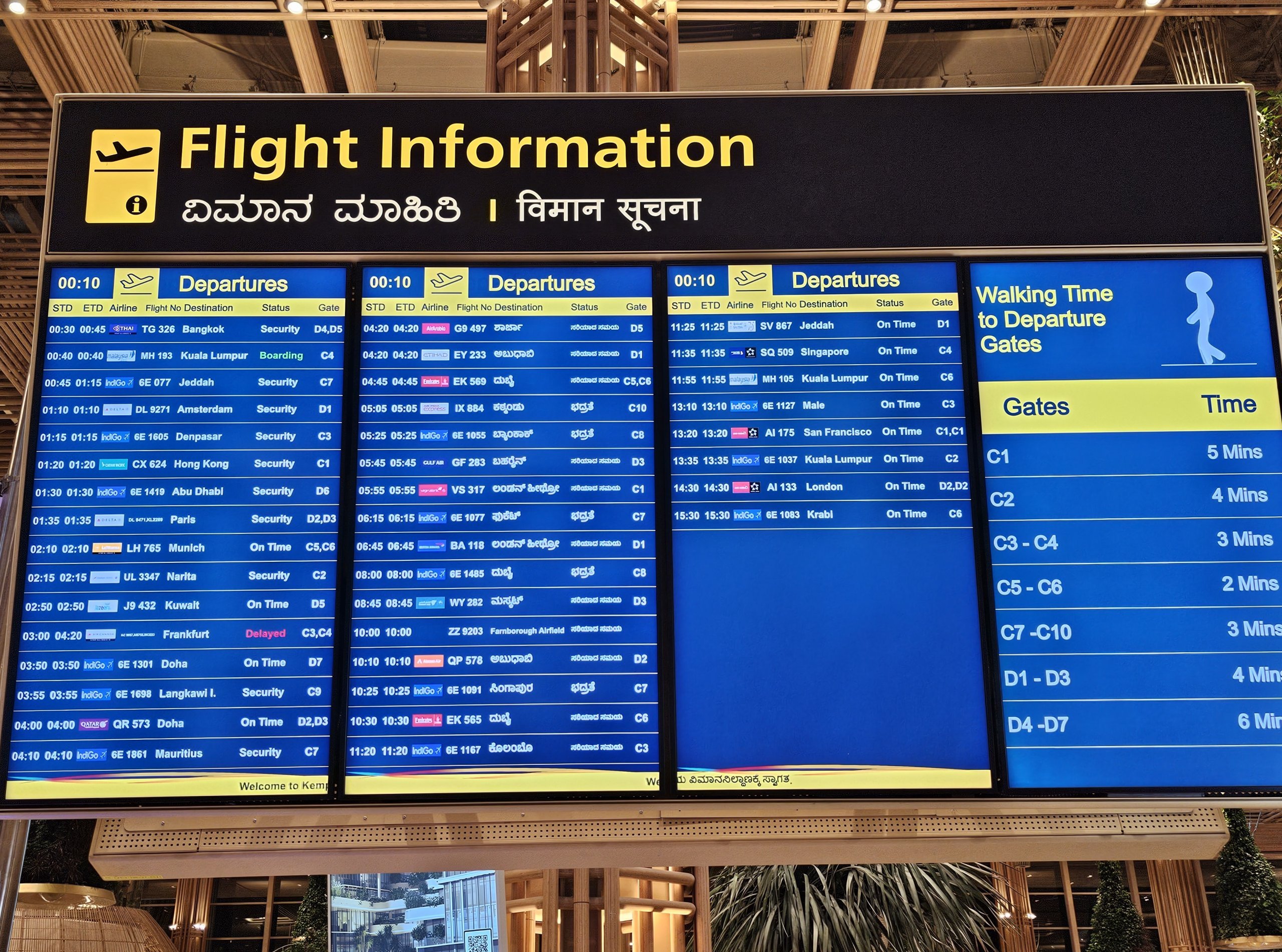 Căutați sosiri sau plecări la/de la Aeroportul Bangalore online în timp real pentru a verifica întârzierile sau orele de îmbarcare? Site-ul oficial al aeroportului oferă întotdeauna cele mai exacte informații: