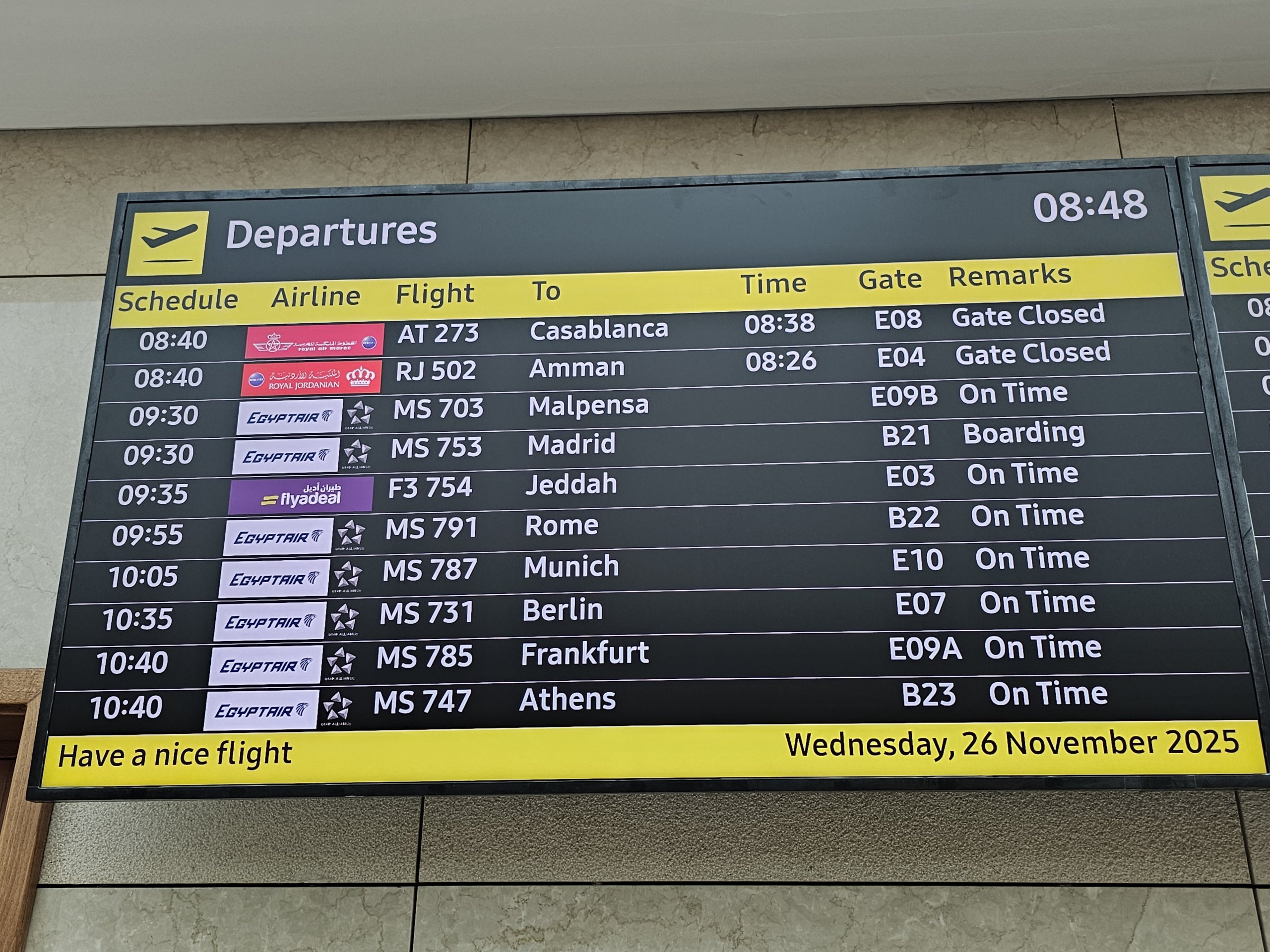 Sosiri și plecări la Aeroportul Cairo