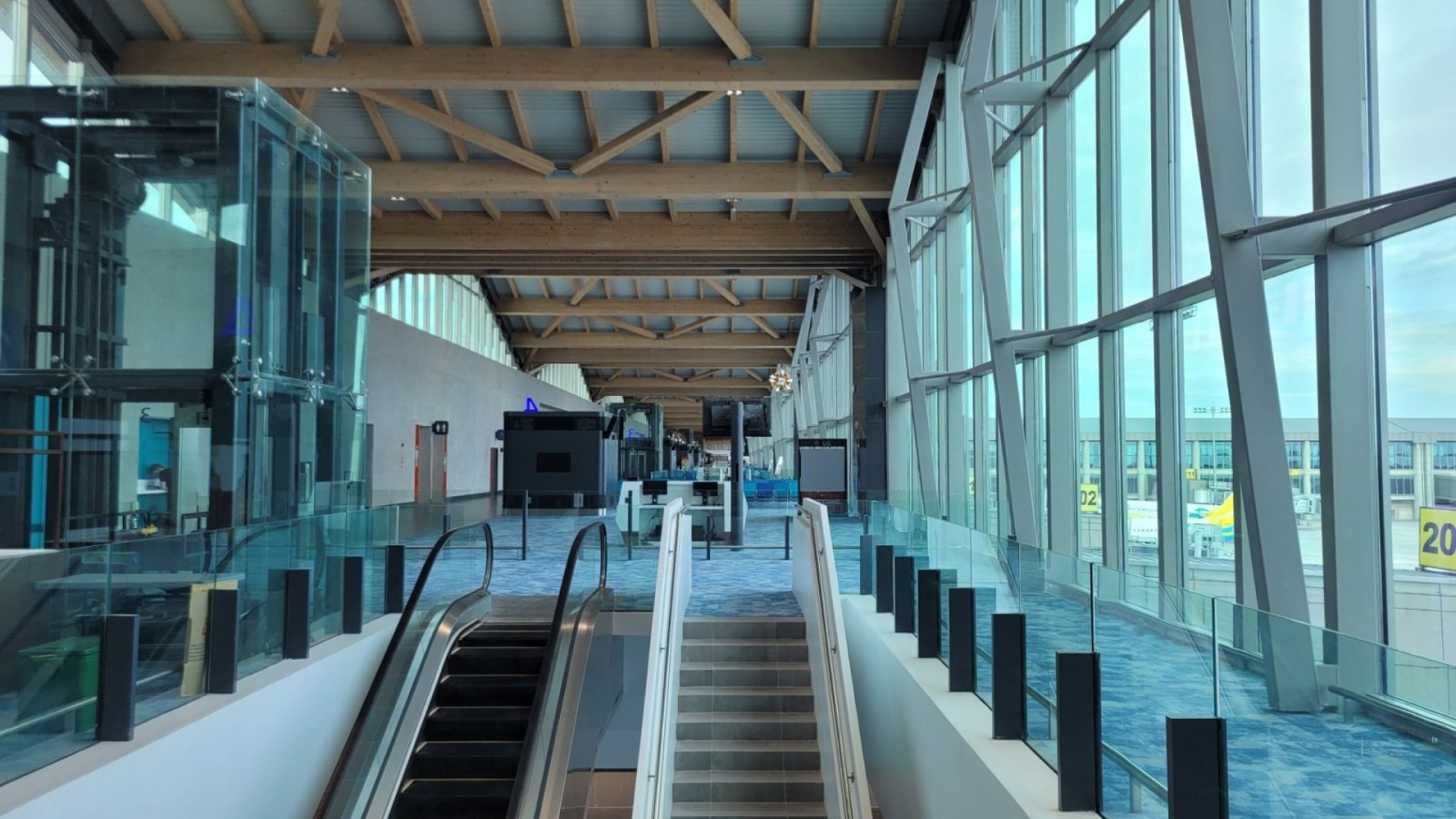 Există, de asemenea, un nou drum de acces larg, care este de câțiva kilometri lungime și este complet diferit de vechiul acces. Am zbor internațional astăzi, așa că sunt curios să văd cum arată acolo.