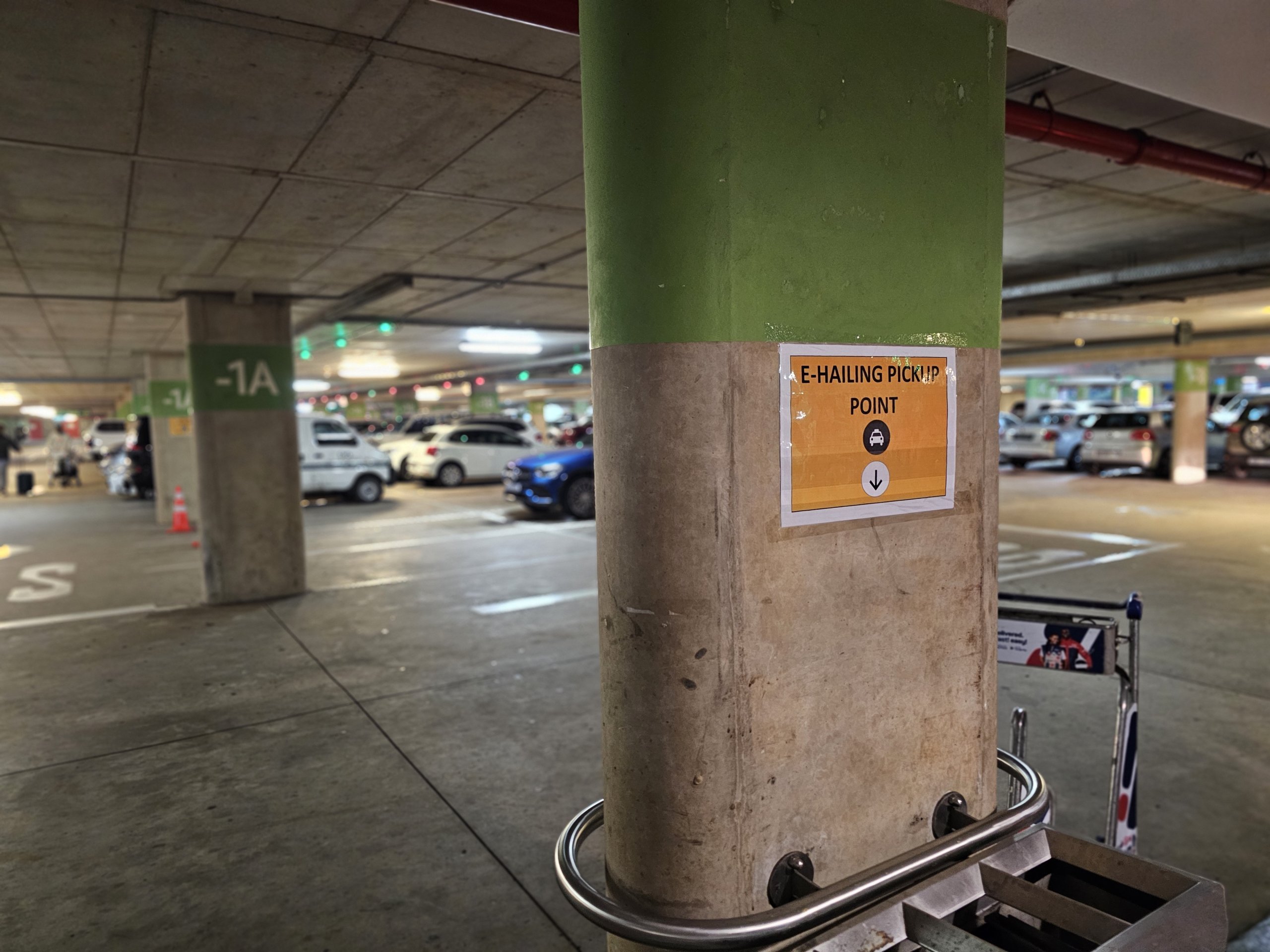 Aplicațiile mobile Uber și Bolt opresc la subsolul parcării din stânga terminalului (nivelul -1). e-hailing.