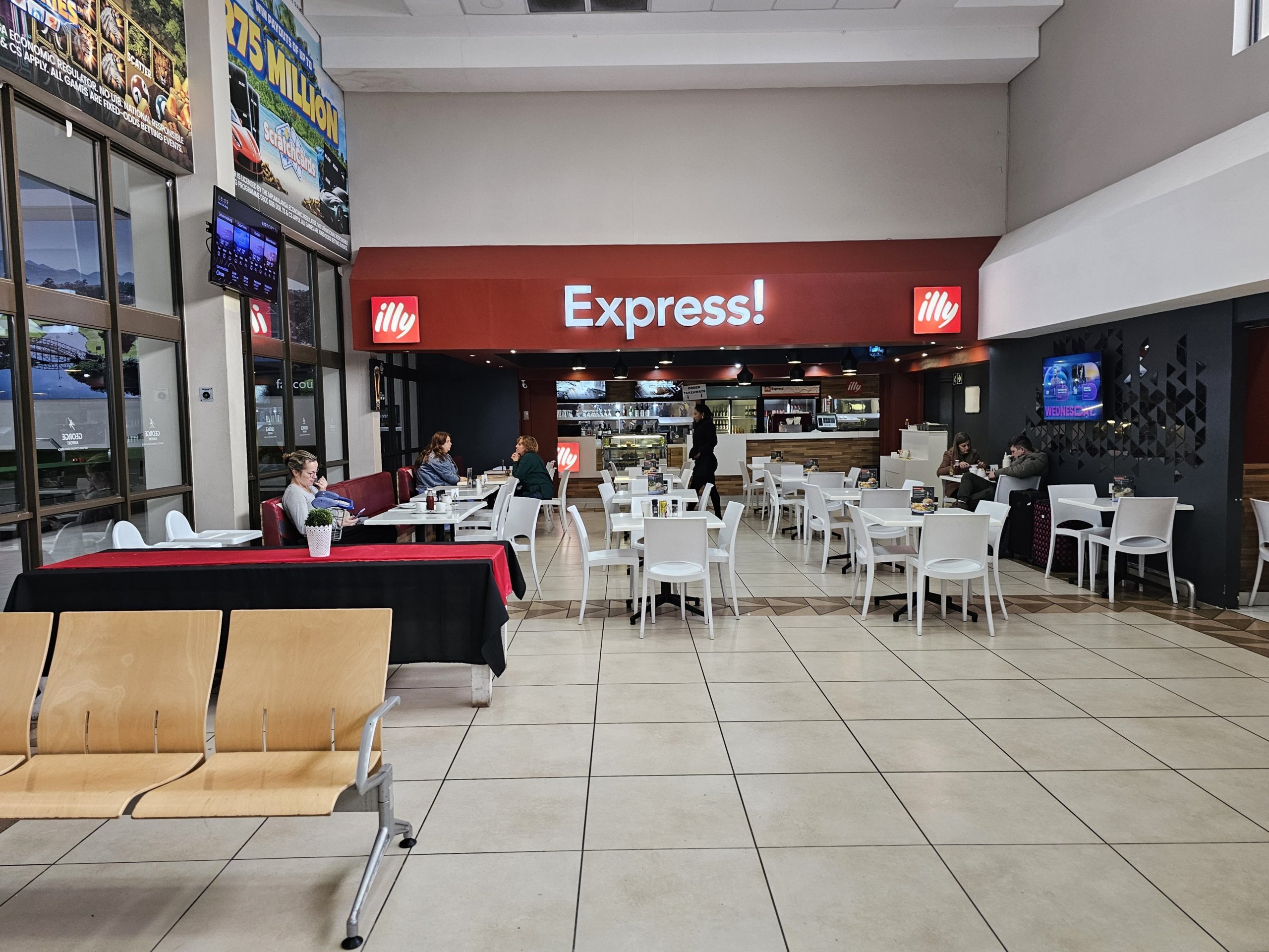 După controlul de securitate există o altă cafenea și o mică filială a restaurantului fast-food Wimpy.