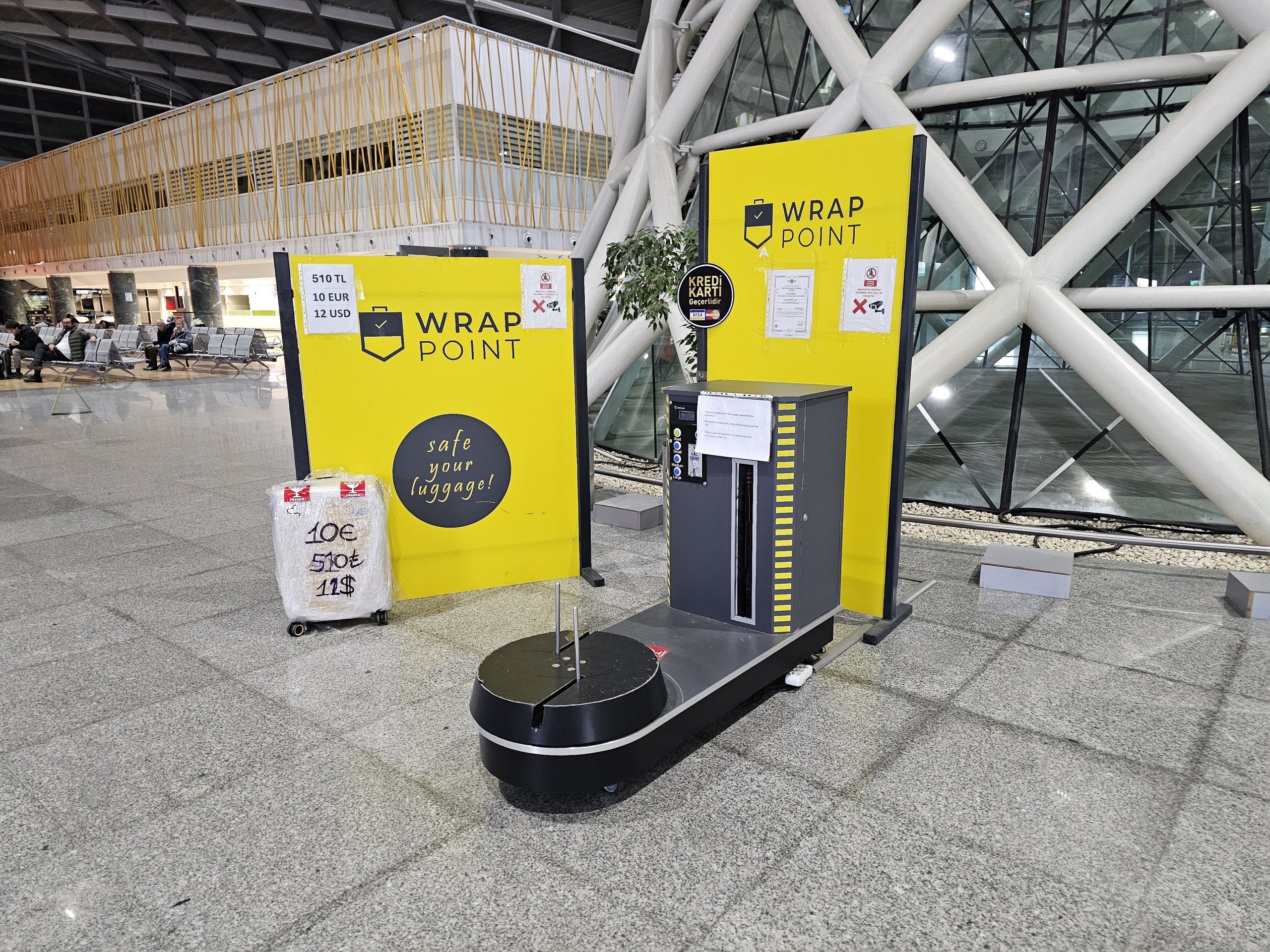 Puteți să vă împachetați bagajul înregistrat în folie protectoare la chioșcul de lângă birourile de check-in.