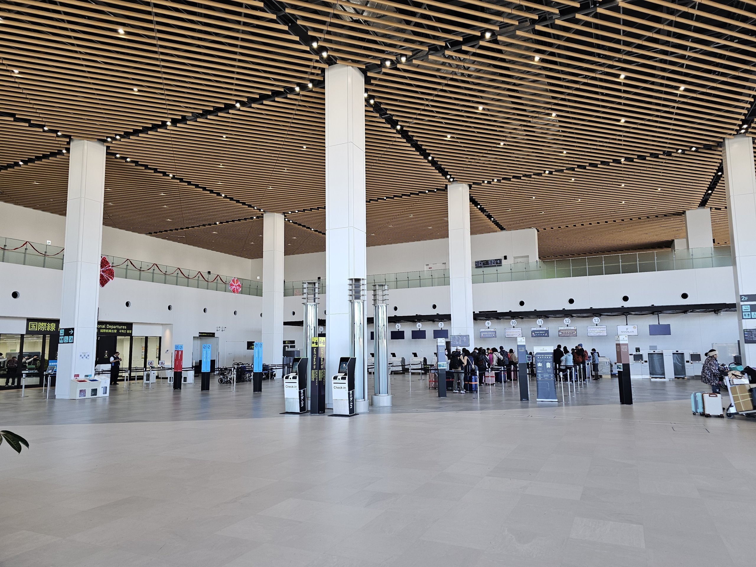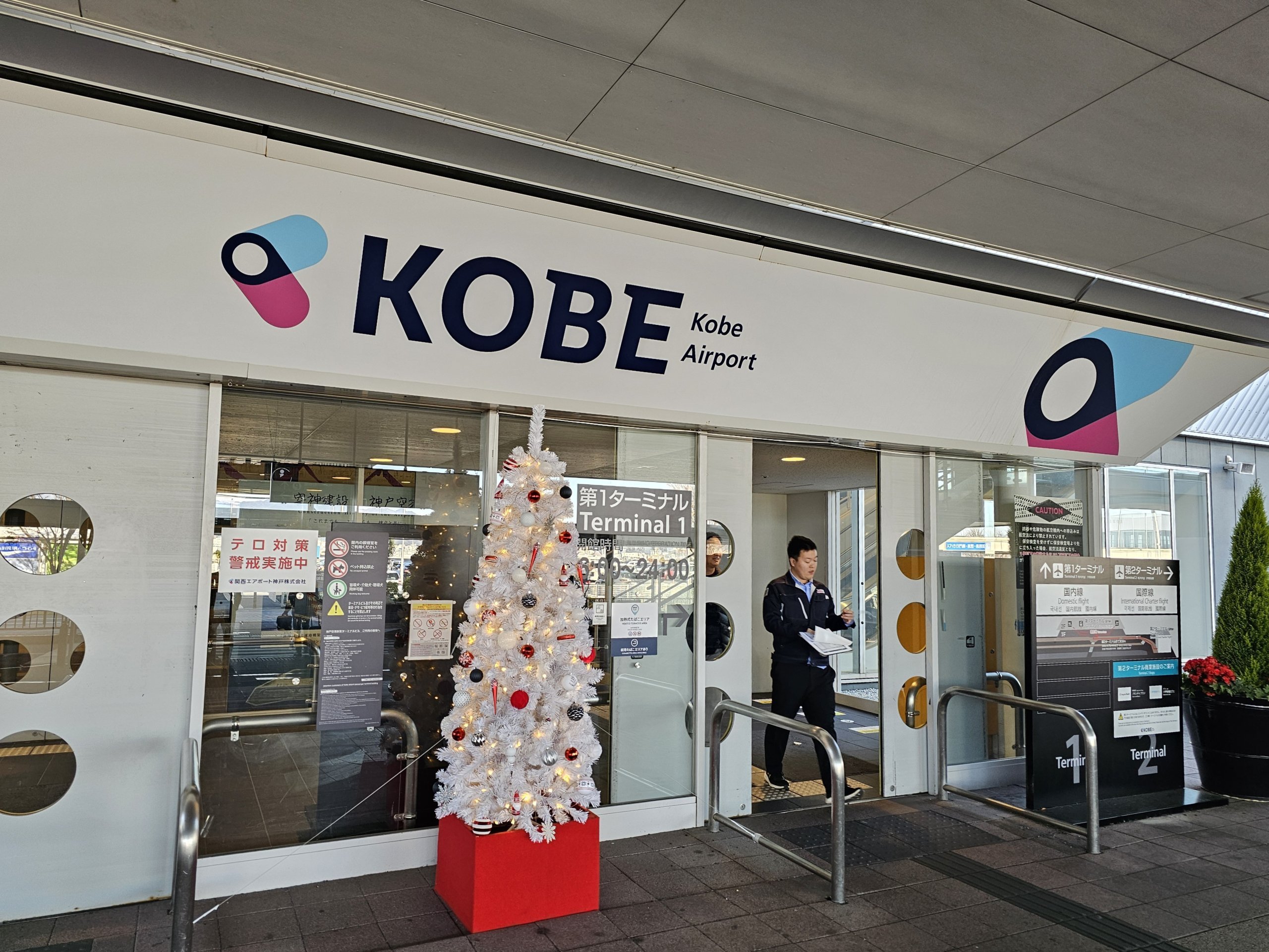 Aeroportul Kobe are 2 terminale mici, bine organizate, în clădiri separate, la aproximativ 400 de metri distanță.