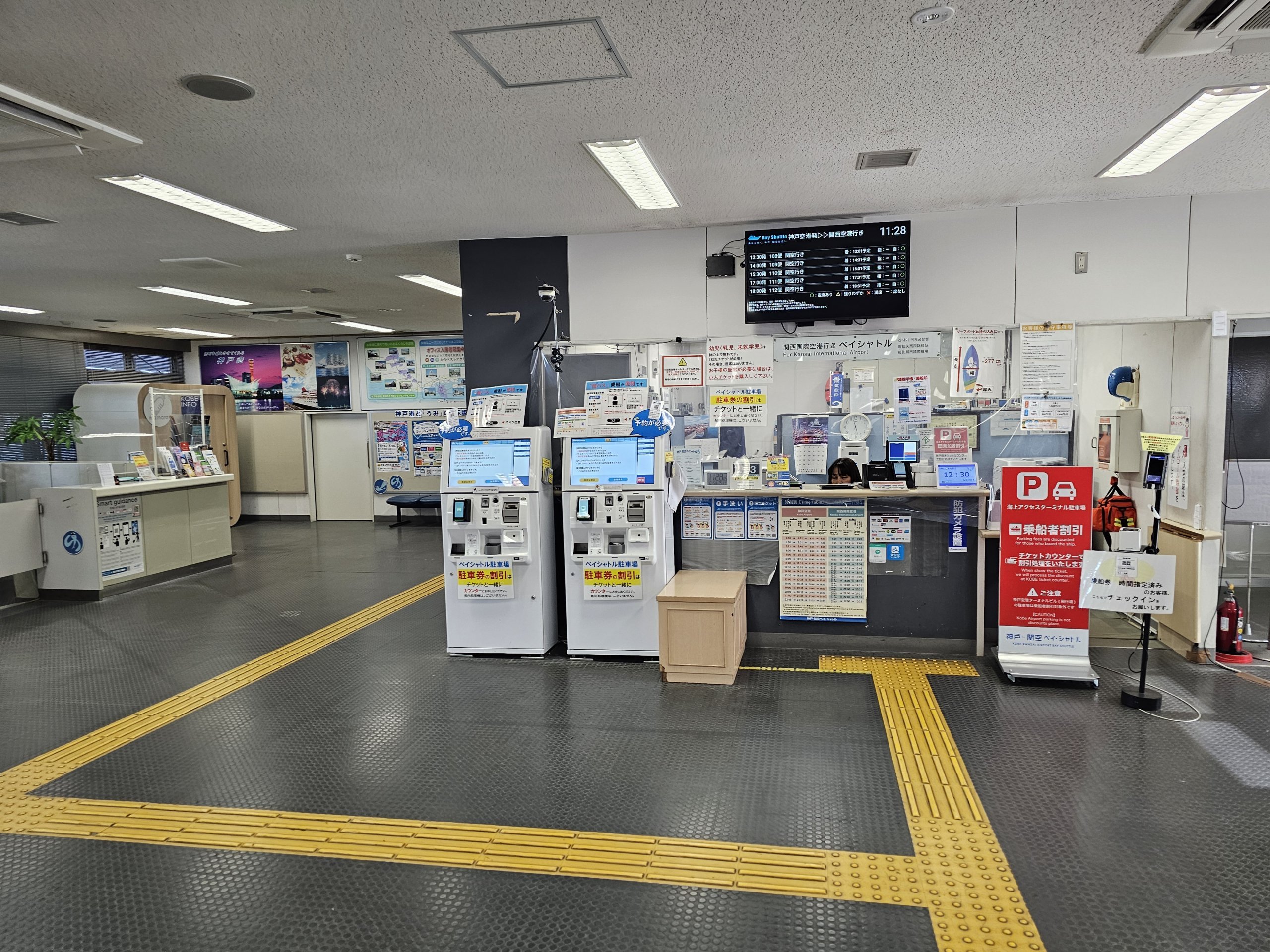 Un autobuz gratuit care face legătura între terminalele 1 și 2 oprește la chei și face legătura cu toate feriboturile, consultați orarul detaliat: kobe-access.jp