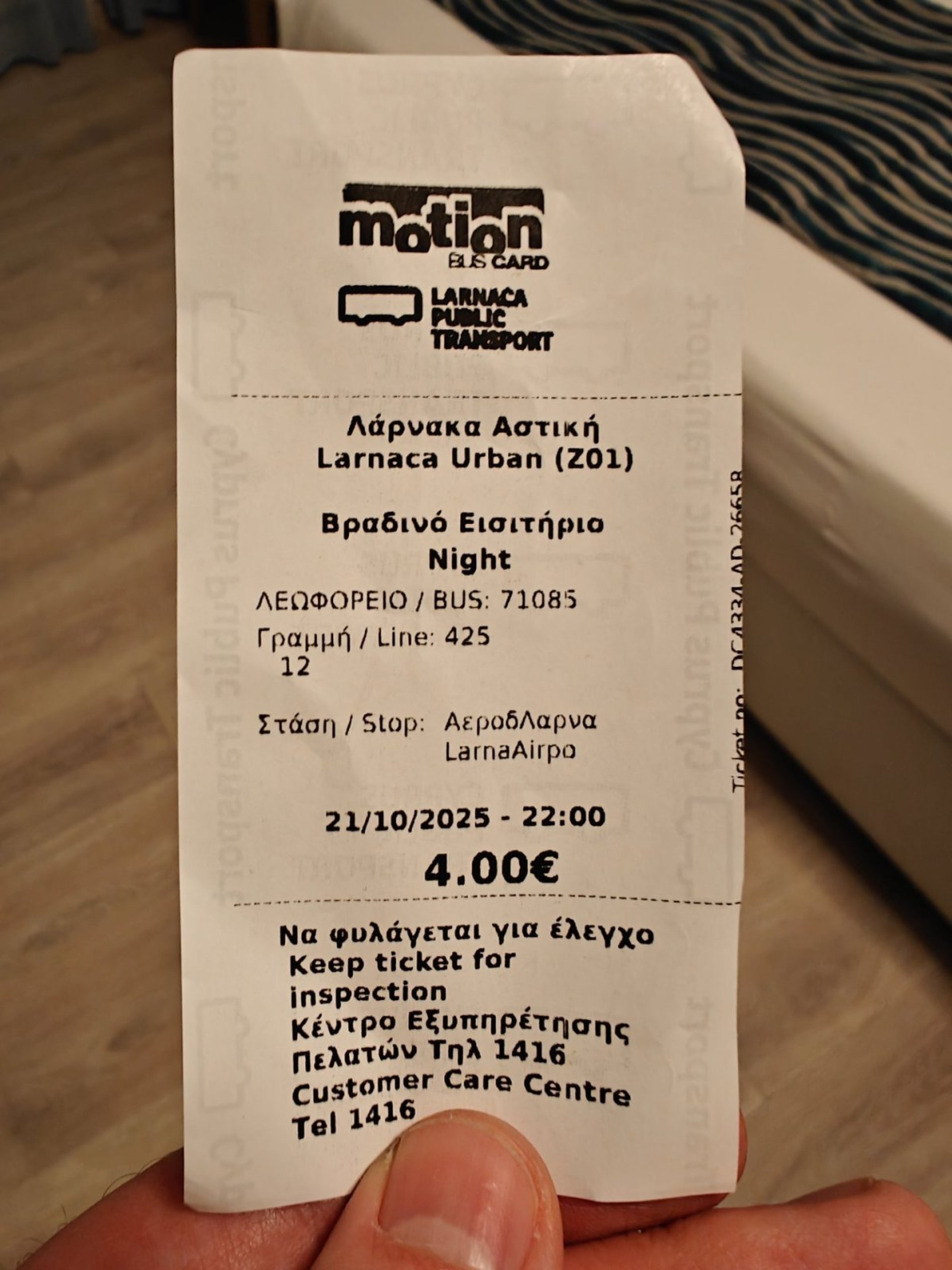 - 2,40 eur - 1 călătorie oriunde în transportul public din Larnaca (bilet fără transfer)
