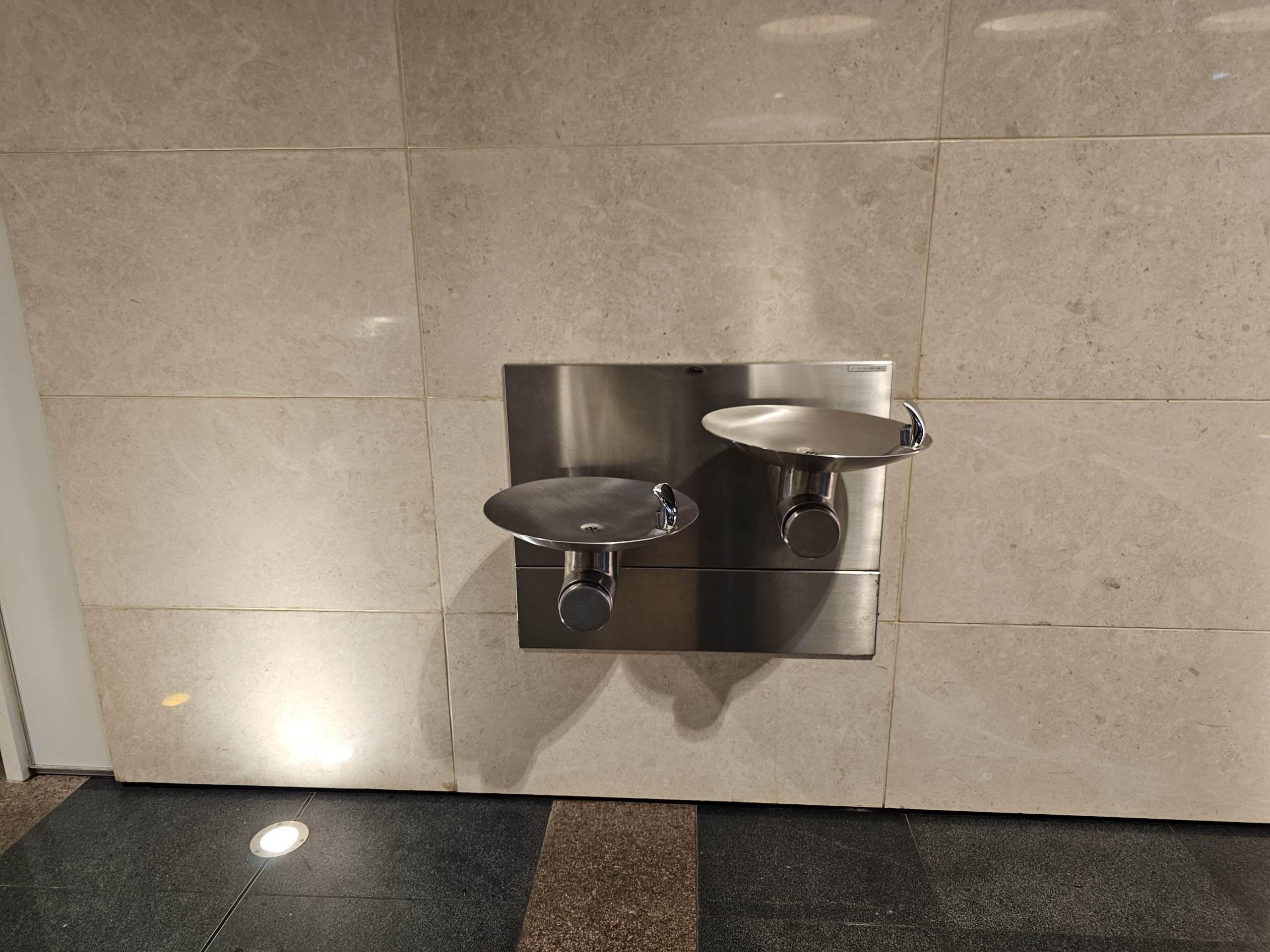 Există mai multe chioșcuri cu apă potabilă gratuită după controlul de securitate.