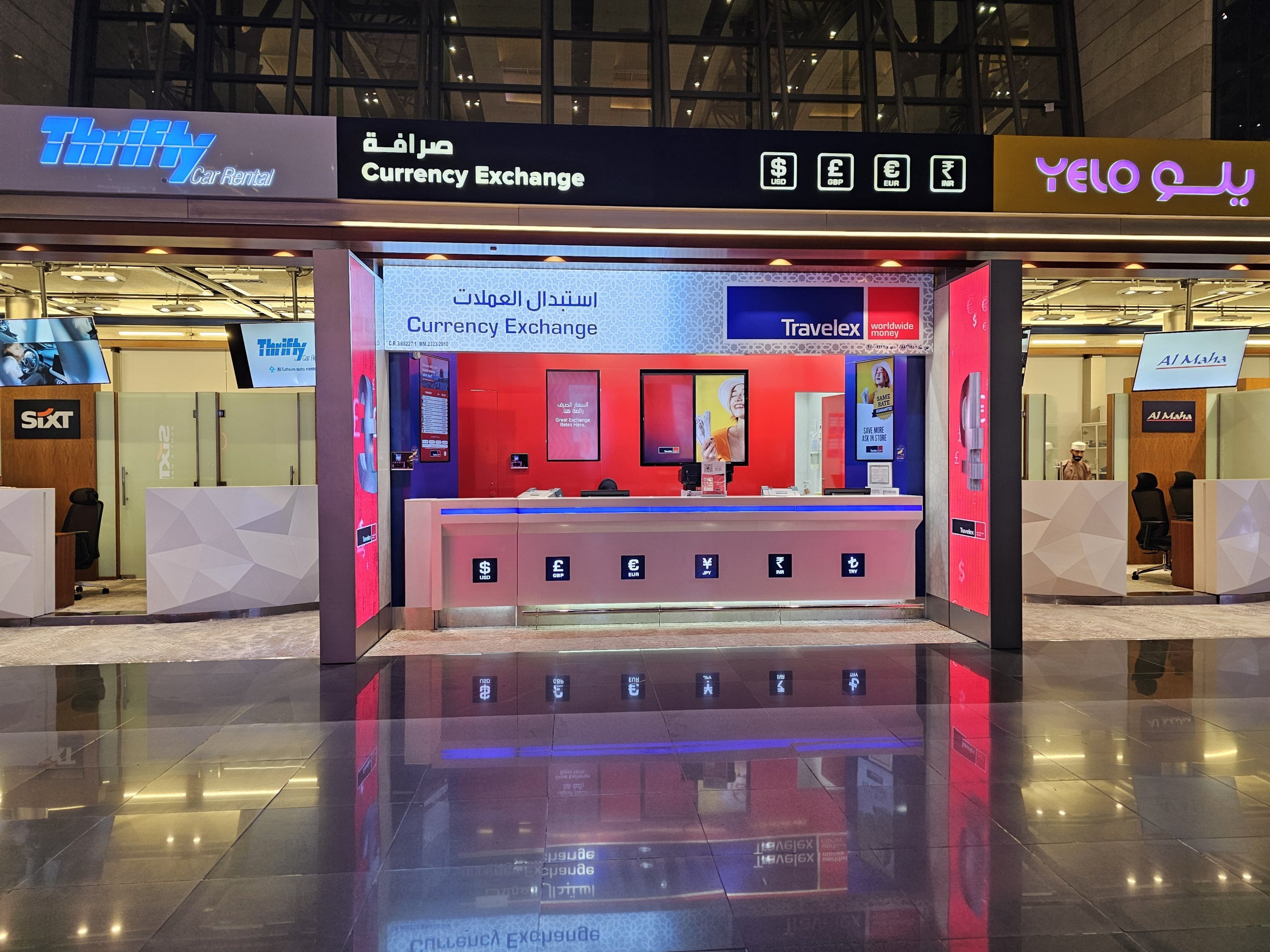 Casele de schimb valutar de la aeroport sunt operate de Travelex și Global Money Exchange, cu rate nefavorabile.