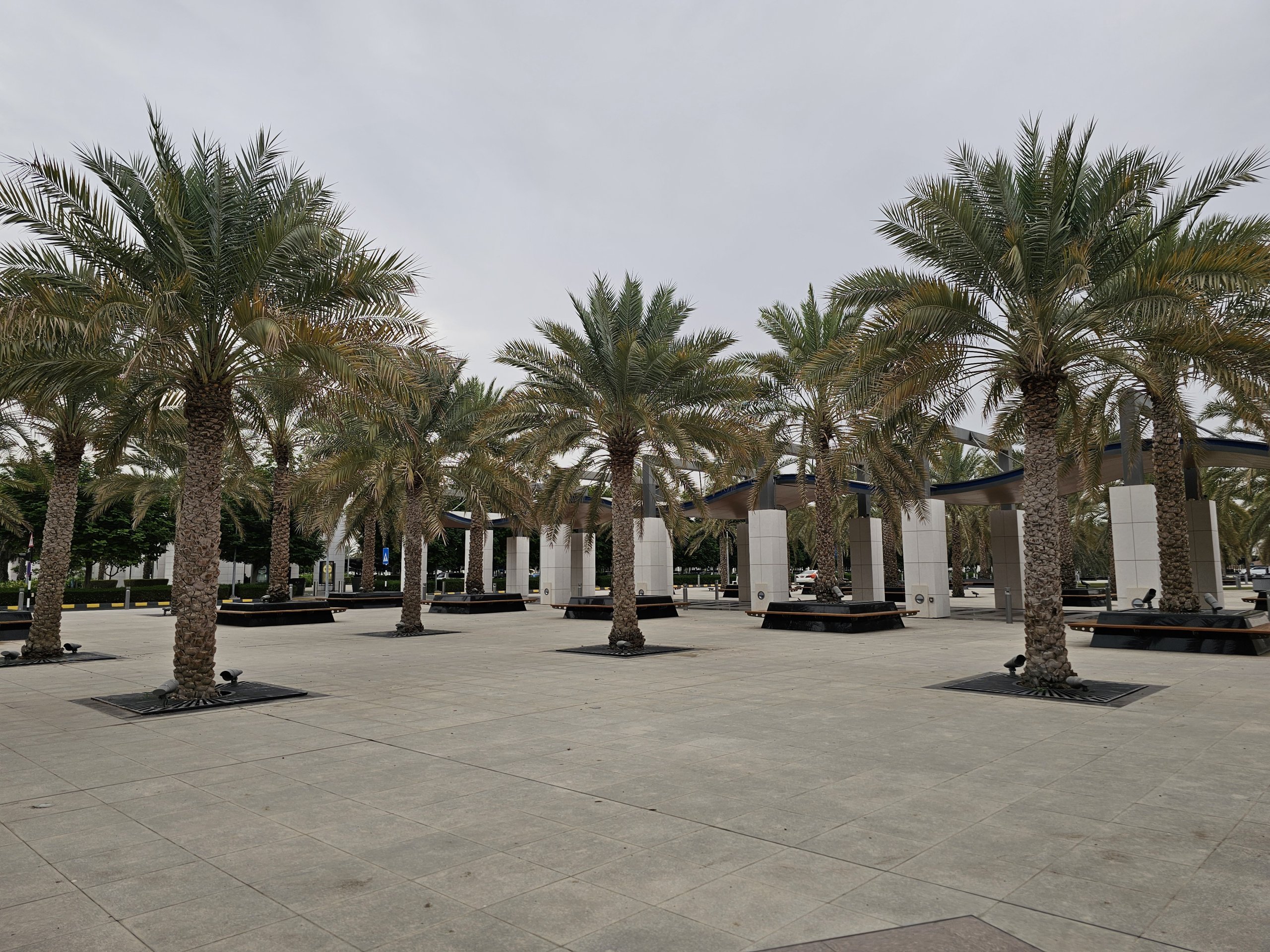 În subsolul din afara terminalului, vă puteți relaxa într-un parc frumos amenajat, cu o mulțime de bănci cu palmieri și o fântână.