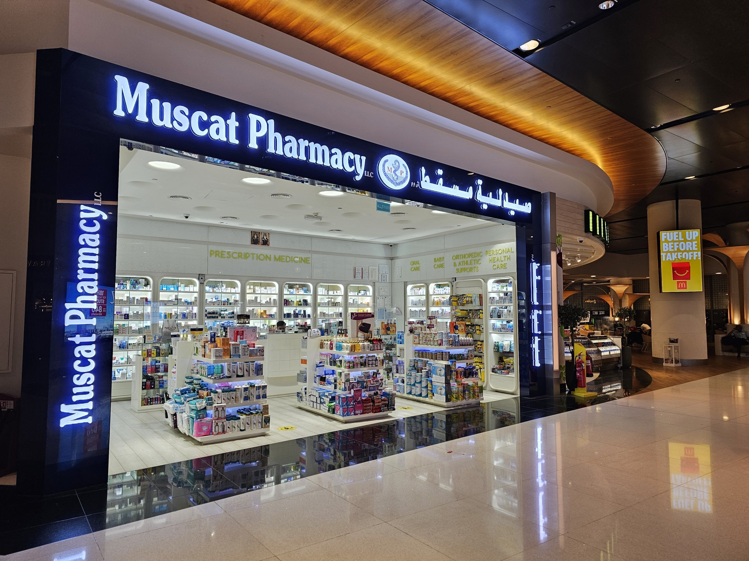Farmacii sunt disponibile în zona publică (nivelul plecări) și în zona de tranzit.