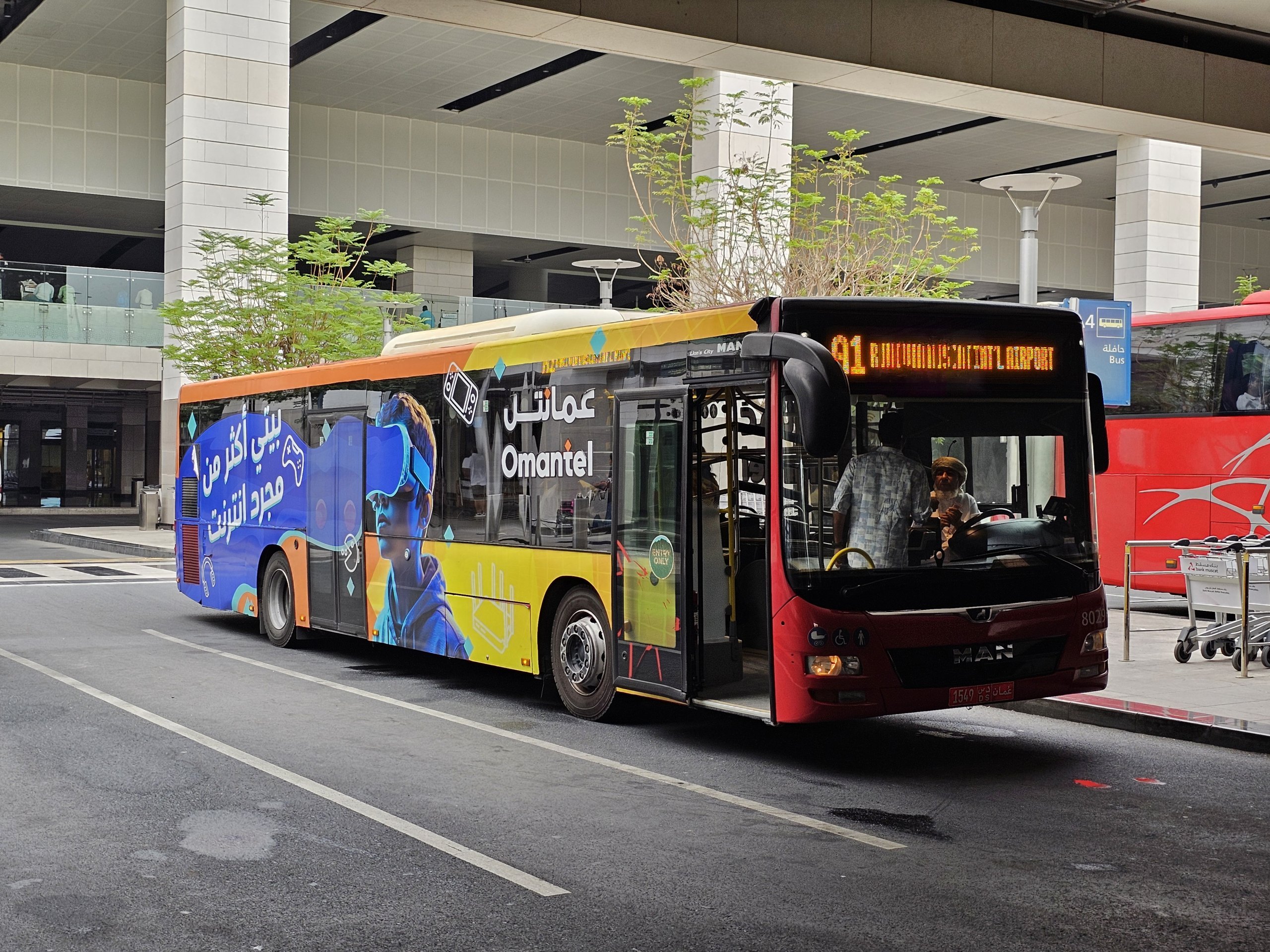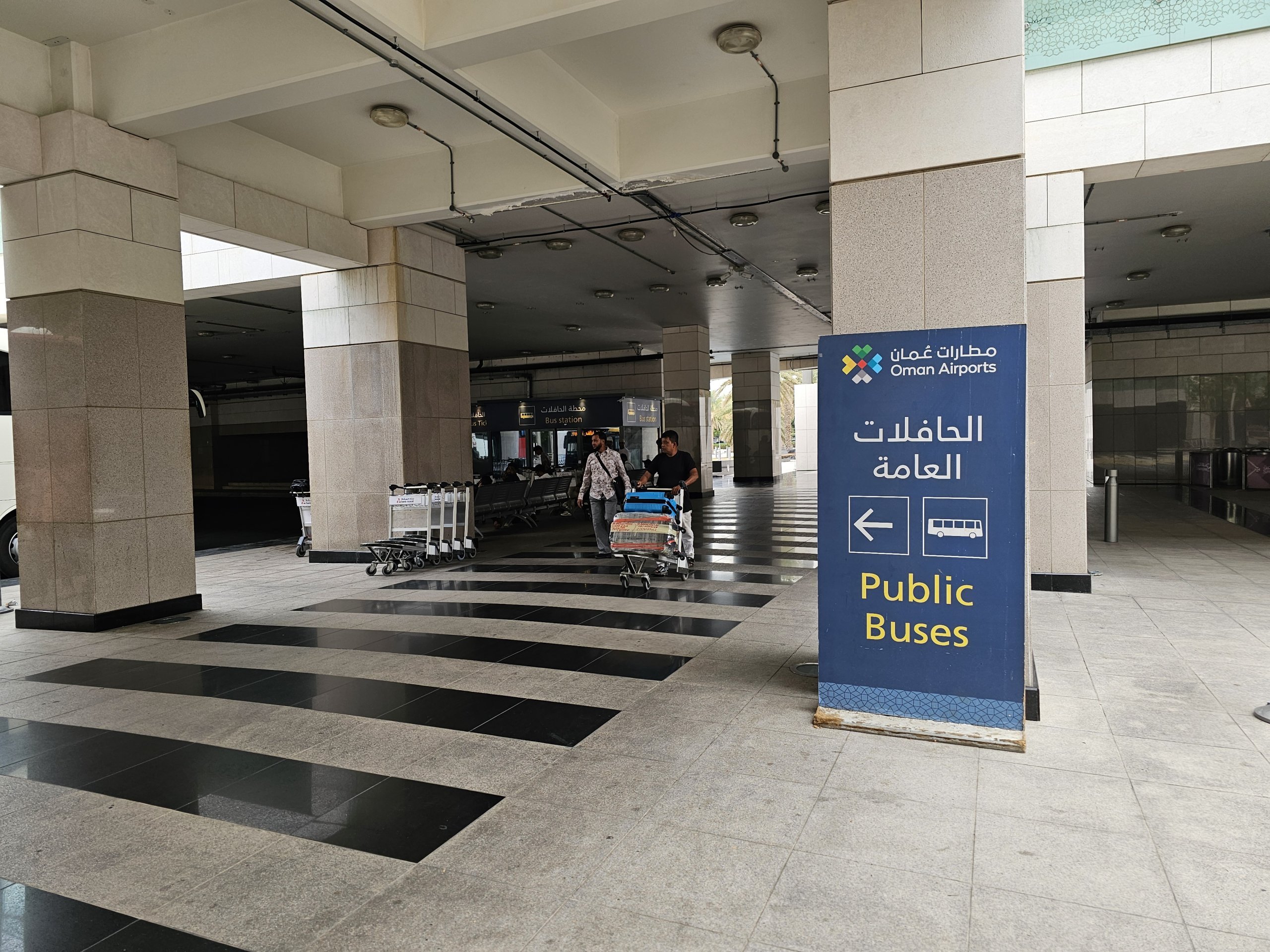 Există două linii de transport public Mwasalat către aeroport din centrul orașului Muscat și din stația principală de autobuz: mwasalat.om/city.