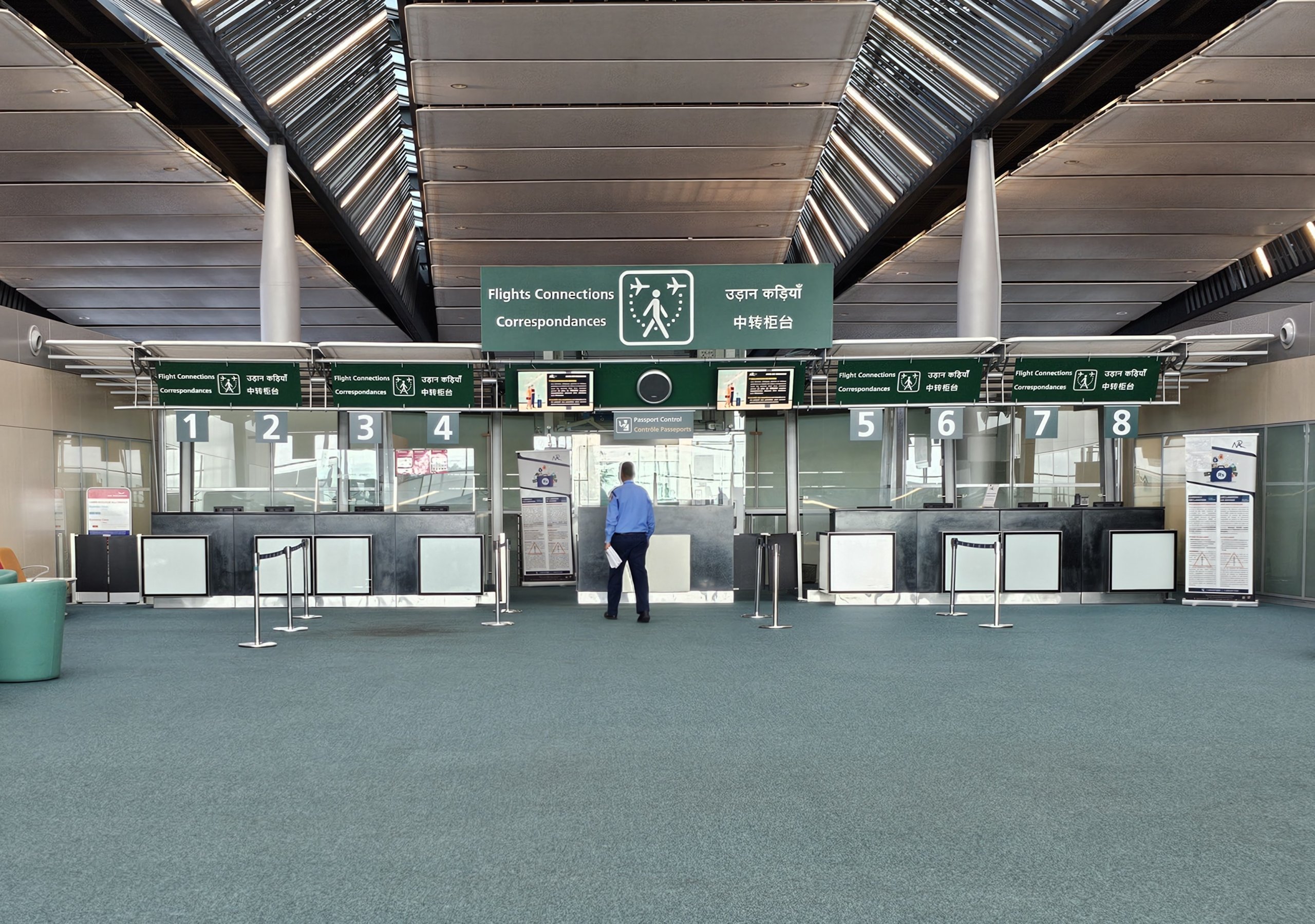 Cu toate acestea, controlul pașapoartelor pentru pasagerii transferați este separat de controlul pașapoartelor standard și veți trece direct prin zona porții de plecare.