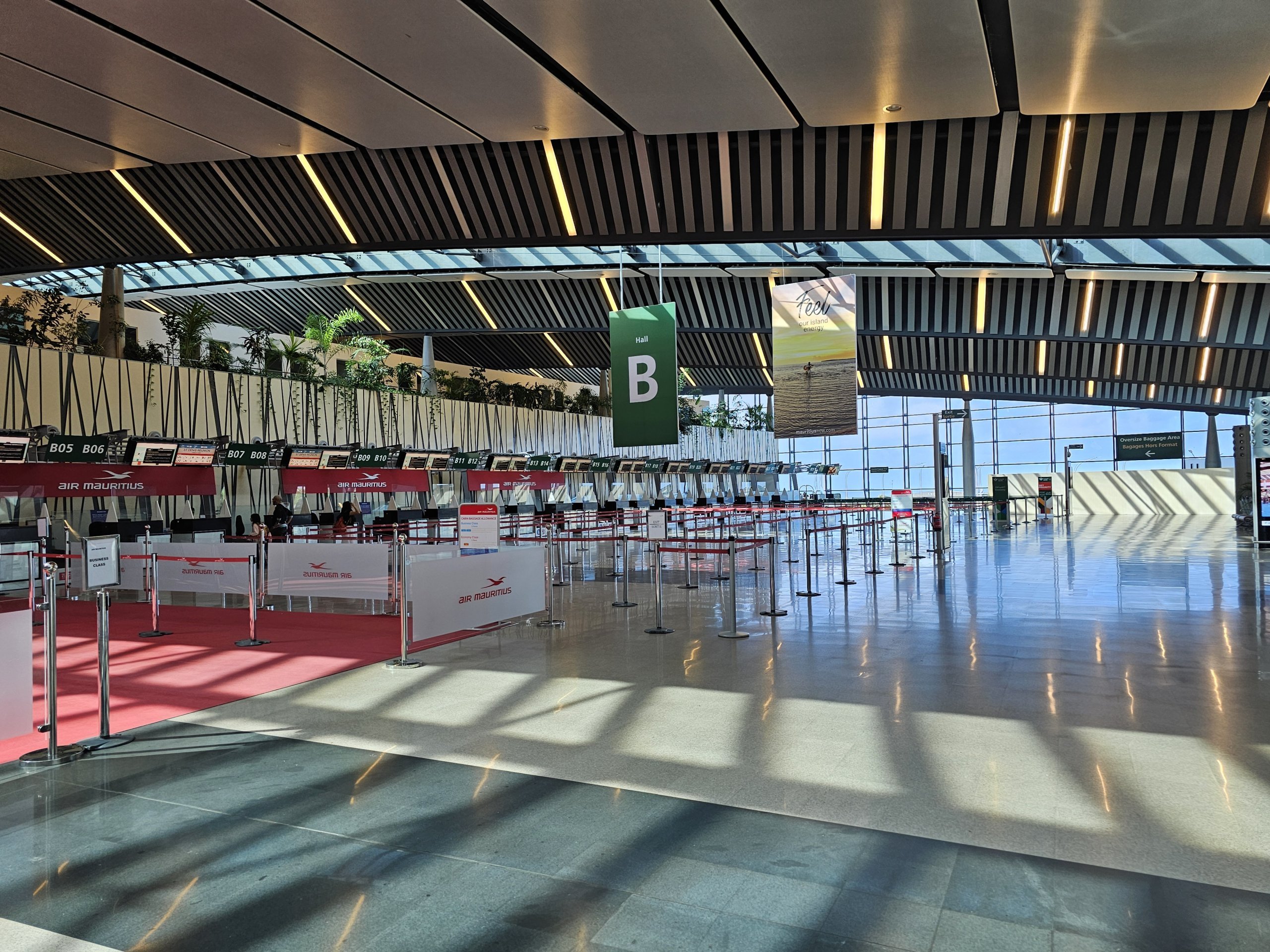 Aeroportul Mauritius utilizează un singur terminal comun pentru toate zborurile. Clădirea este modernă și spațioasă și există o mulțime de locuri după controlul de securitate.