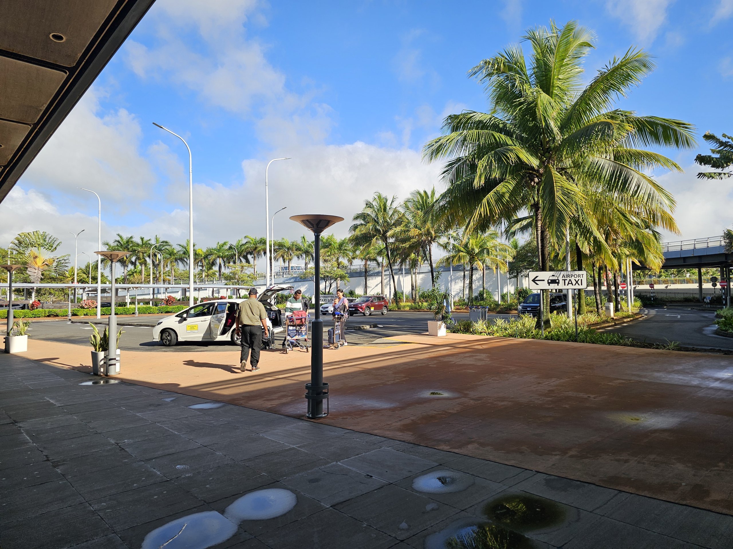În stânga sălii de sosiri se află stația oficială de taxiuri. Din păcate, nu există taximetre în Mauritius, iar prețurile sunt stabilite în funcție de cerere. Atunci când călătoriți de la aeroport, cel mai probabil nu veți putea negocia un preț mai mic decât cel pe care vi-l va oferi șoferul de taxi.