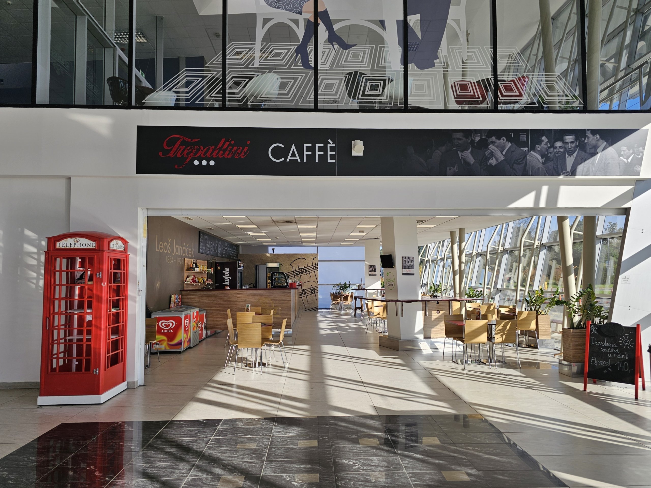 În zona publică a aeroportului veți găsi cafeneaua Fragollini, care oferă baghete, sandvișuri sau băuturi.