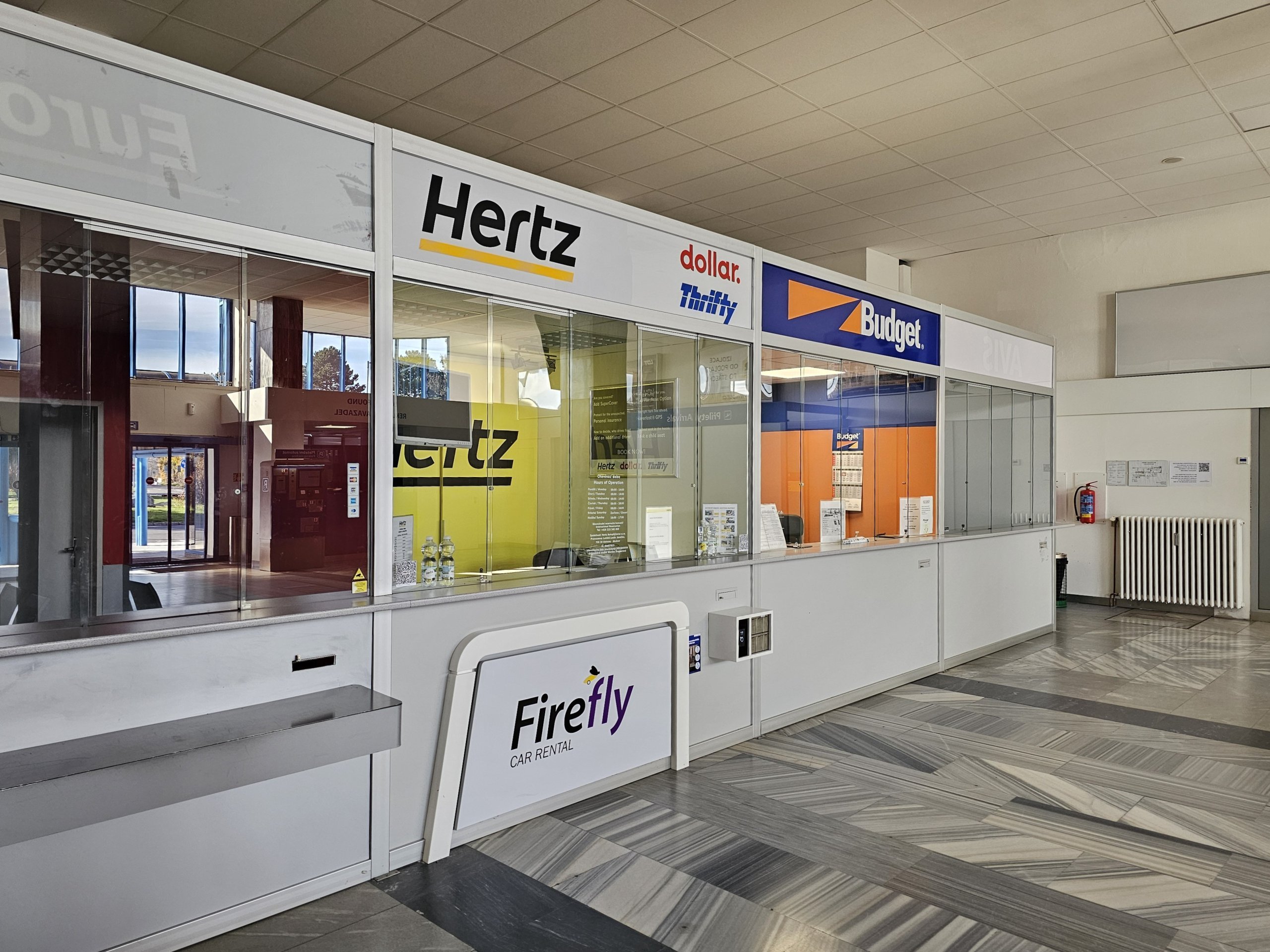 Ghișeele de închirieri auto sunt situate direct în sala de sosiri.