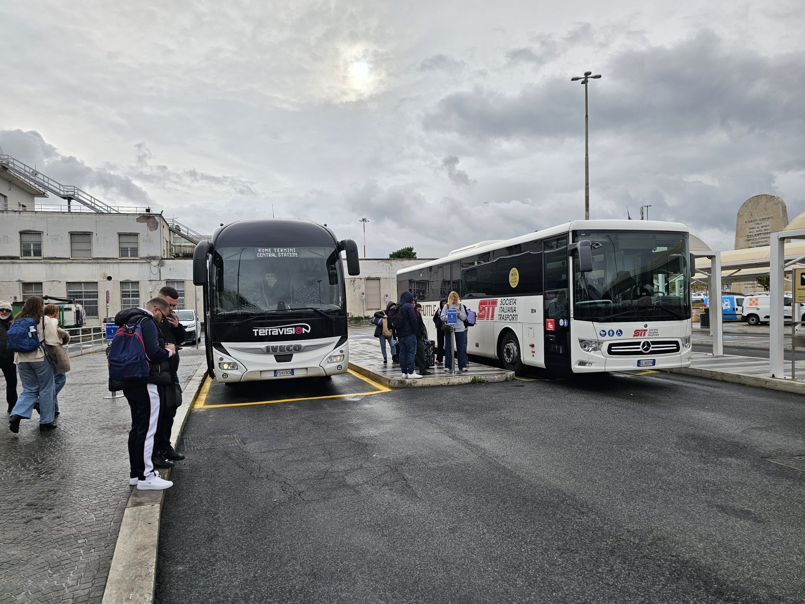 La stația Termini, toate companiile opresc pe Via Giovanni Giolitti (aceleași stații ca spre aeroportul Fiumicino, deci asigurați-vă că vă urcați în autobuzul potrivit).