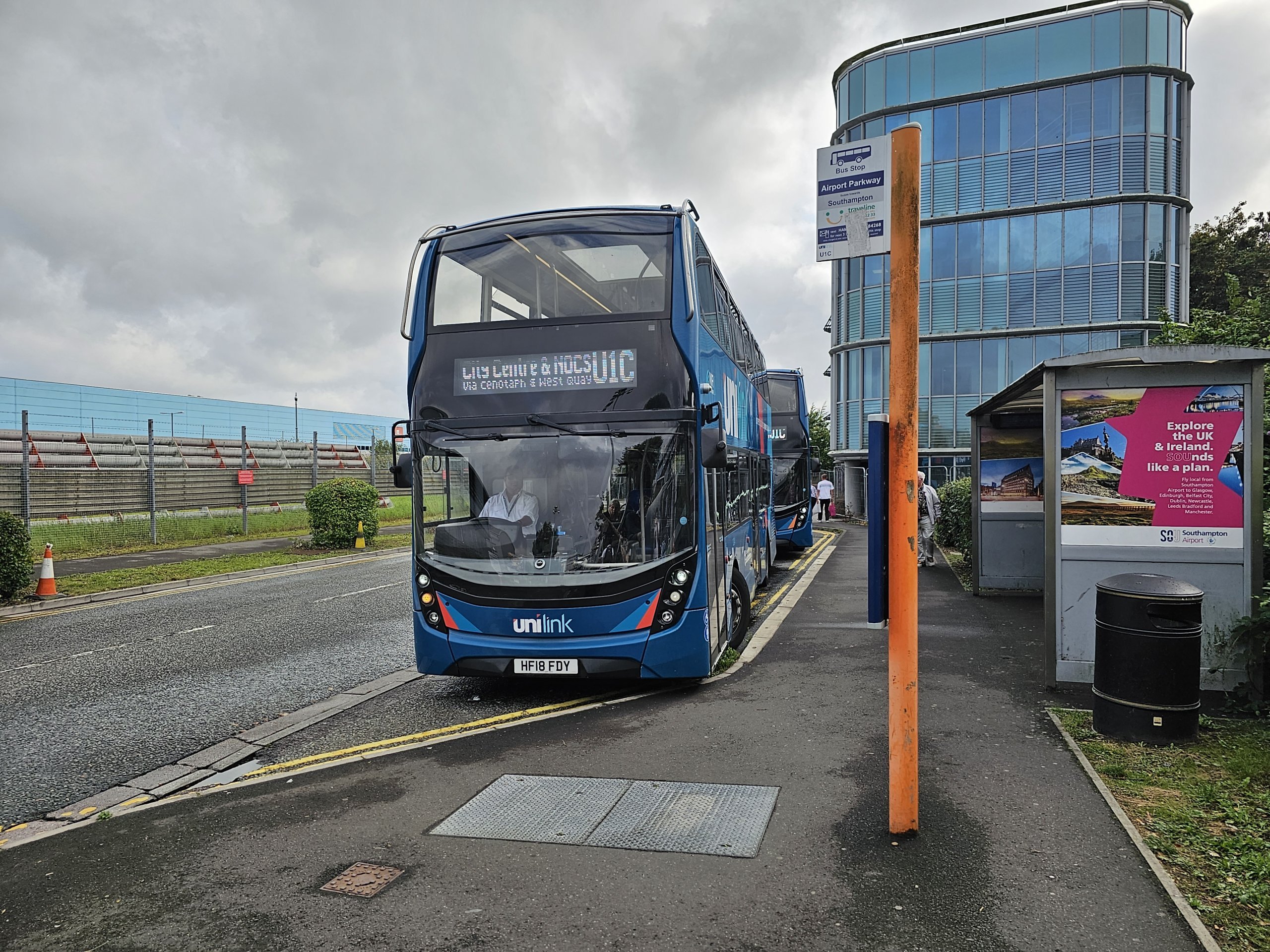Acestea circulă la fiecare 10 sau 15 minute și fac legătura între aeroport și universitate, centrul orașului Southampton și zona Waterfront, unde există și un doc pentru feribotul de pasageri. Cu toate acestea, călătoria către centru este lungă și durează 45 de minute.