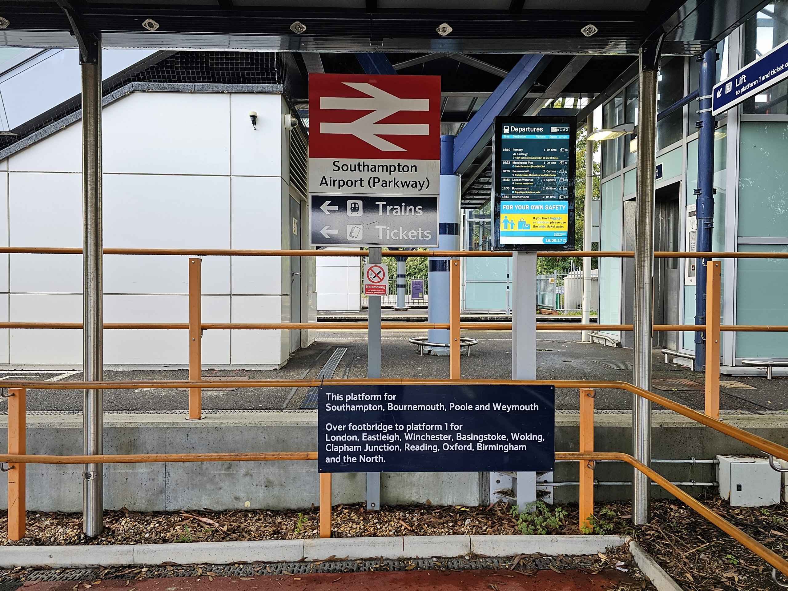 Trenurile care schimbă la Southampton Central pleacă de la primul peron în direcția clădirii aeroportului. Trenurile spre nord către Londra pleacă de pe al doilea peron, la care se ajunge pe pasarelă.