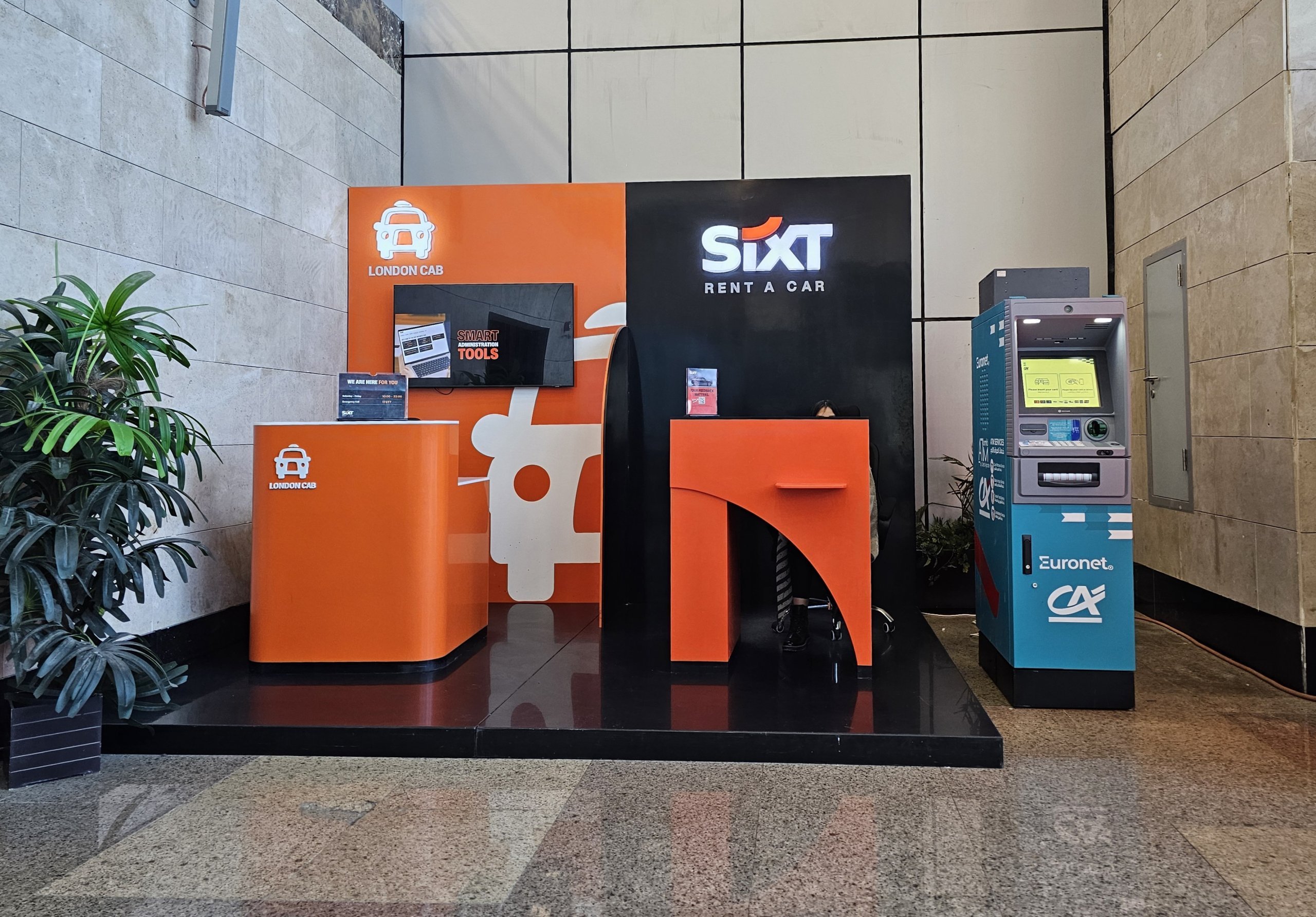 Există o filială Sixt de închirieri auto chiar în terminal, dar și alte companii de închirieri auto oferă un serviciu "Meet and Greet", cu un membru al personalului care vă așteaptă în sala de sosiri cu mașina dumneavoastră.
