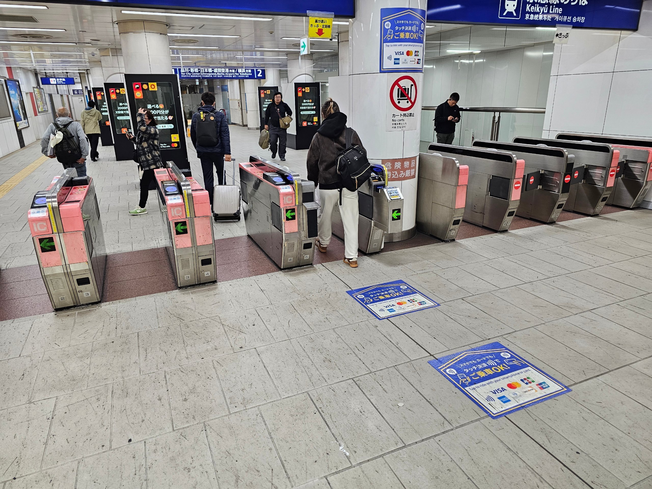 Dacă vă plătiți biletul cu carduri de transport japoneze, nu trebuie să cumpărați un bilet la aparat. Trebuie doar să atașați cardul la turnichet atunci când intrați și ieșiți de pe peron.