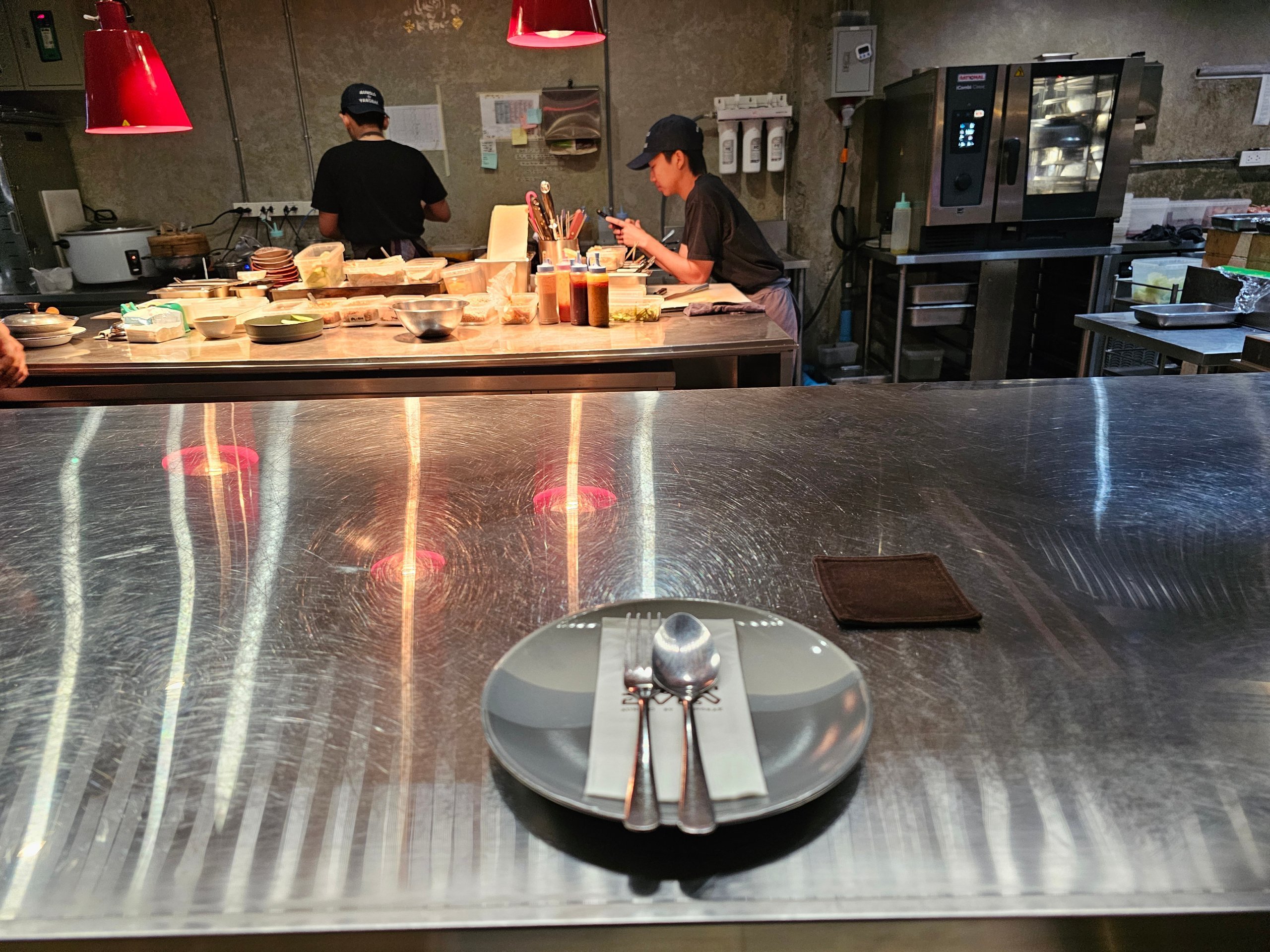 Restaurantul este mic și intim, cu o bucătărie deschisă din care puteți vedea prepararea tuturor felurilor de mâncare.