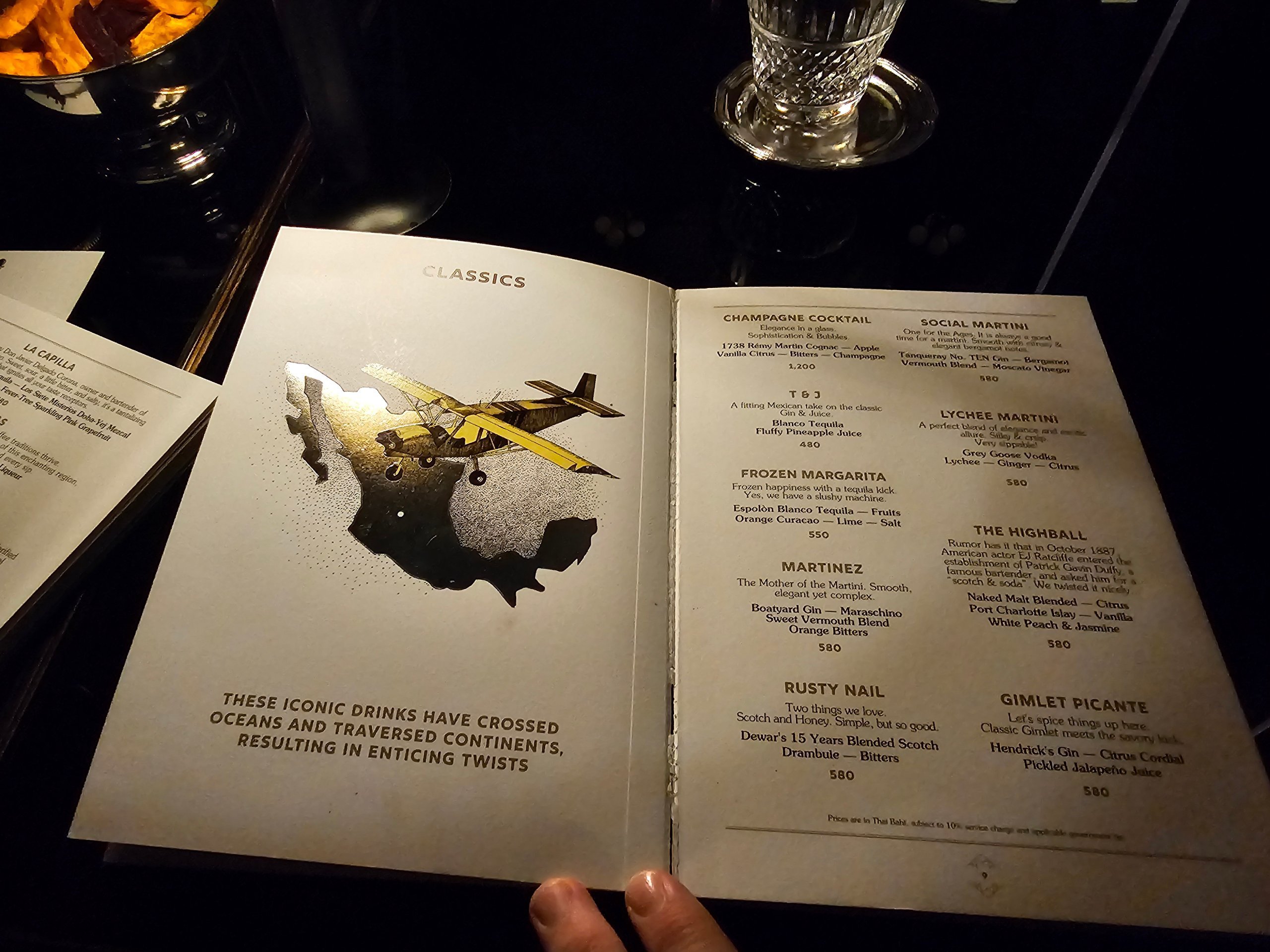 Barul de lux de la Four Seasons Hotel Bangkok, situat pe malul râului Chao Phraya, ne-a impresionat în mod deosebit prin cadrul și atmosfera sa frumoasă.