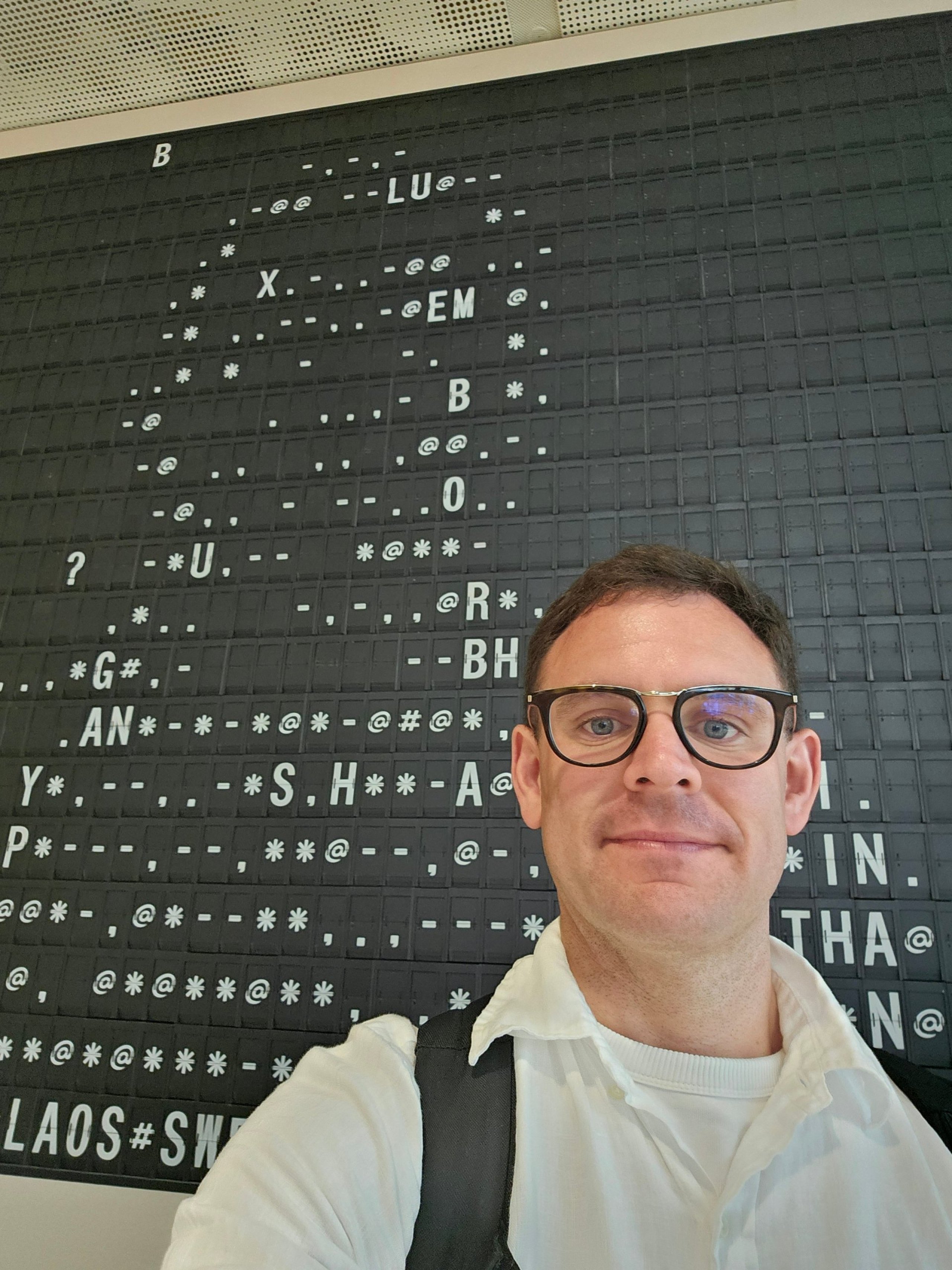 Stai în fața unui vechi panou de plecare și acesta folosește flip-flops pentru a-ți crea conturul.