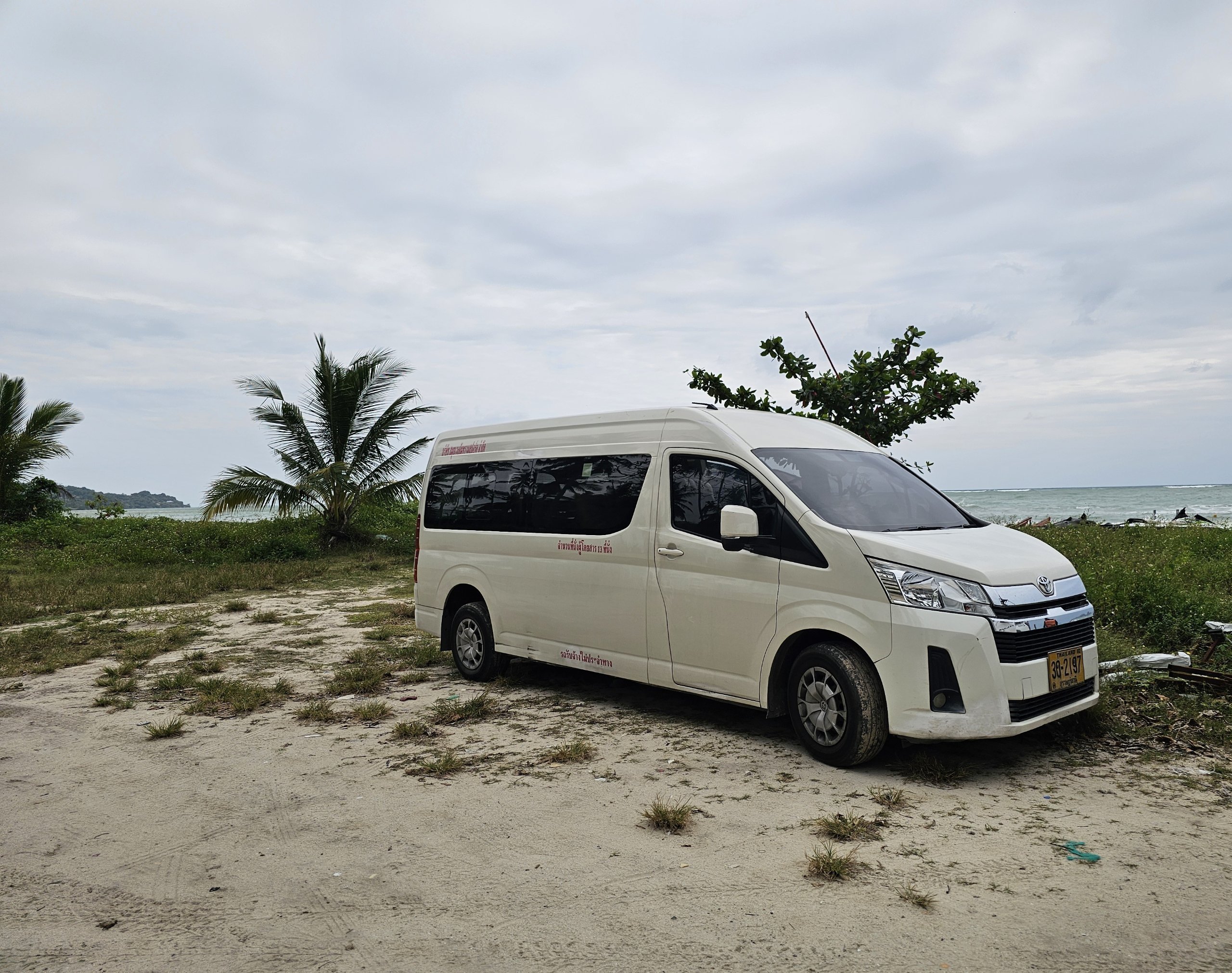 Minivan-ul cu șofer ajunge în fața recepției hotelului nostru exact la timp.