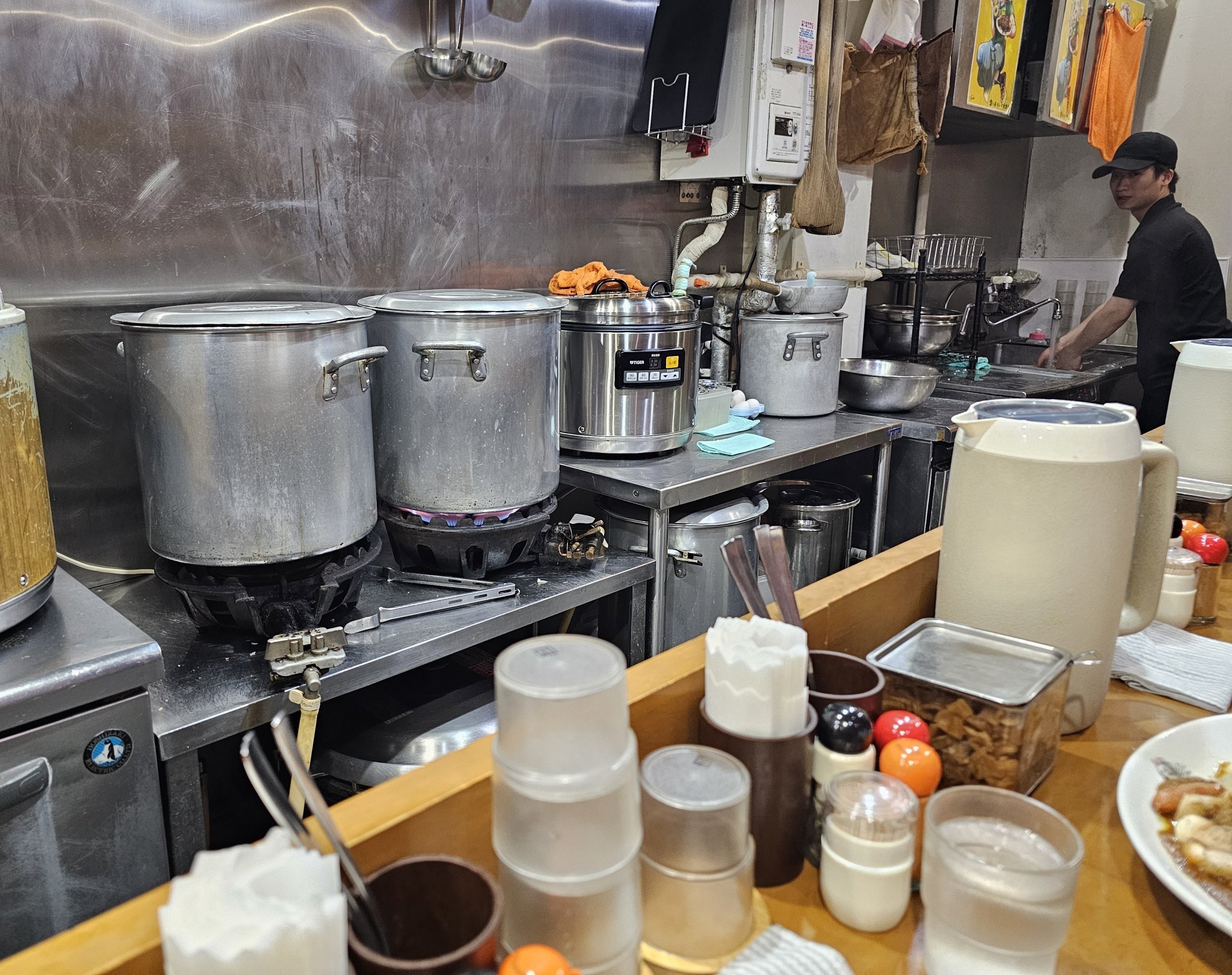 Hinoya Curry este un local micuț cu o singură încăpere în jurul barului și bucătăriei în care poți vedea direct de la mese.