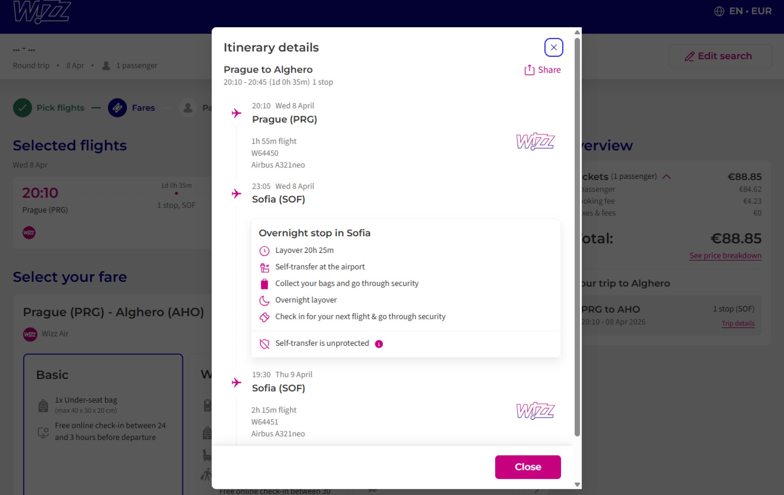 - ❌ garanția transferului în sine - dacă primul zbor este întârziat sau anulat, Wizz Air nu va oferi o rambursare pentru al doilea zbor