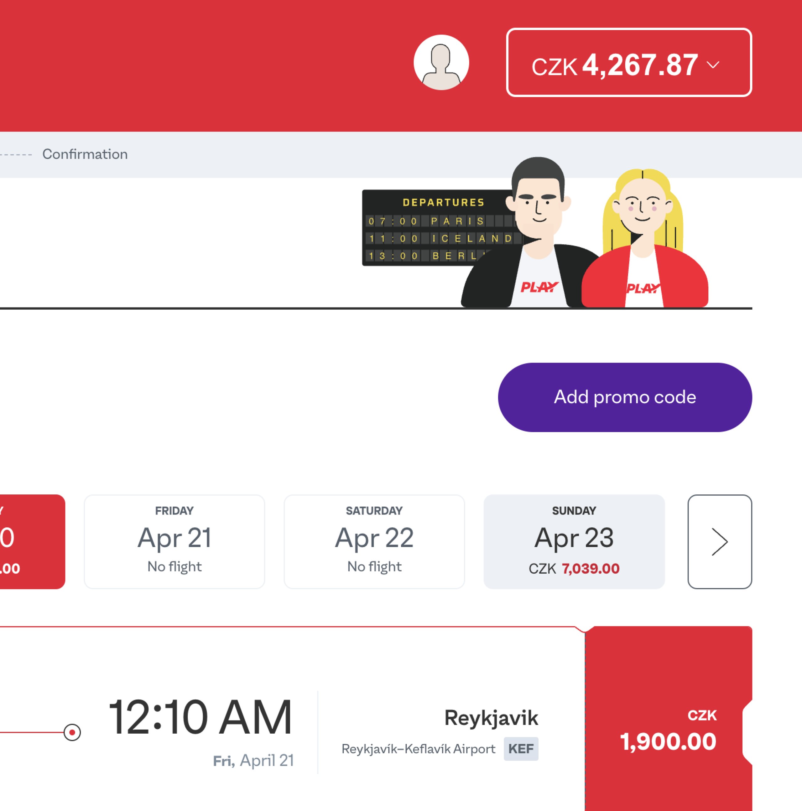 Faceți clic pe ea și apoi introduceți codul promoțional pentru a obține o reducere la biletele Play Airlines.