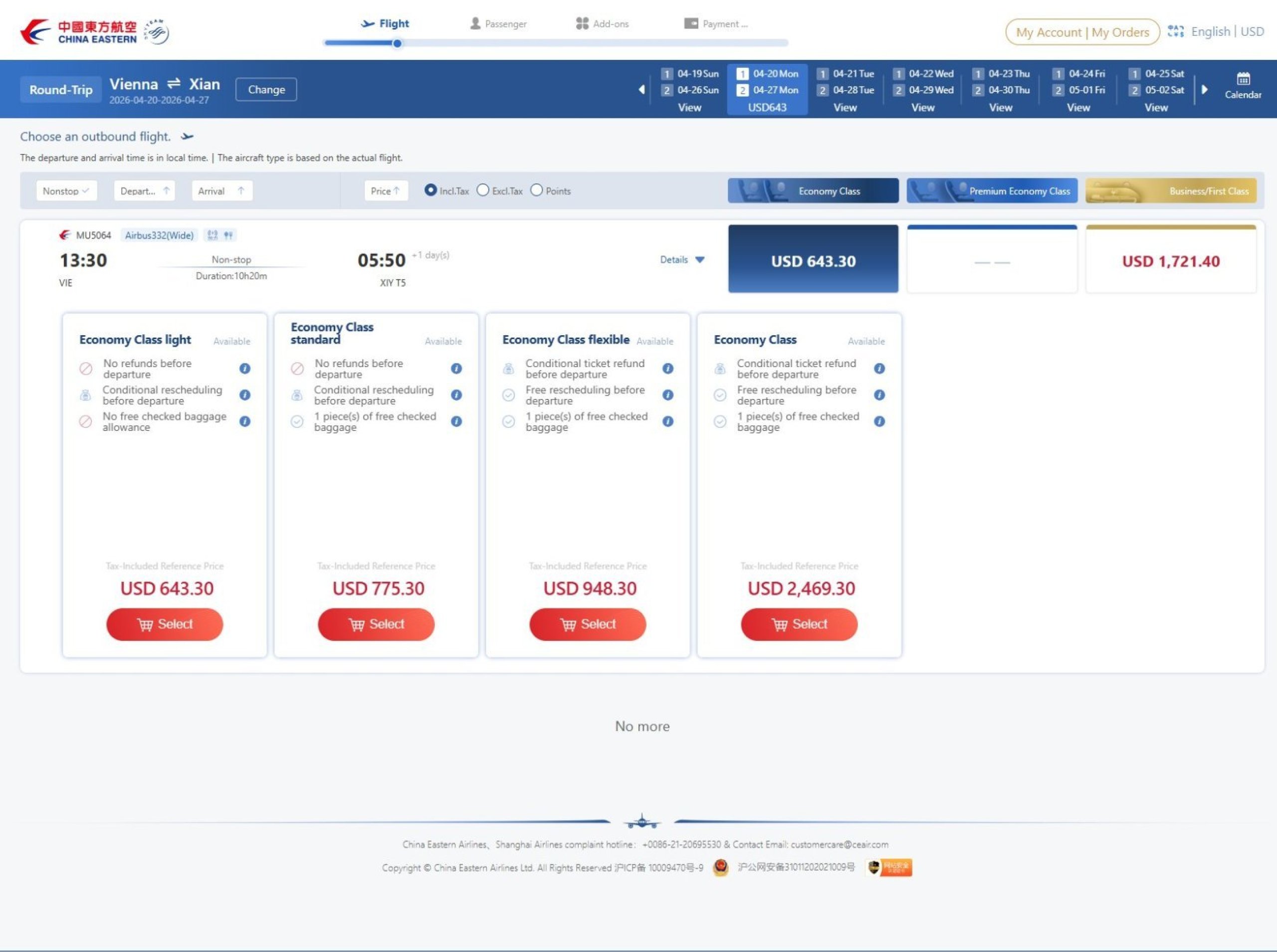 Iar China Eastern va începe să zboare între Viena și Xi'an pe 20 aprilie.