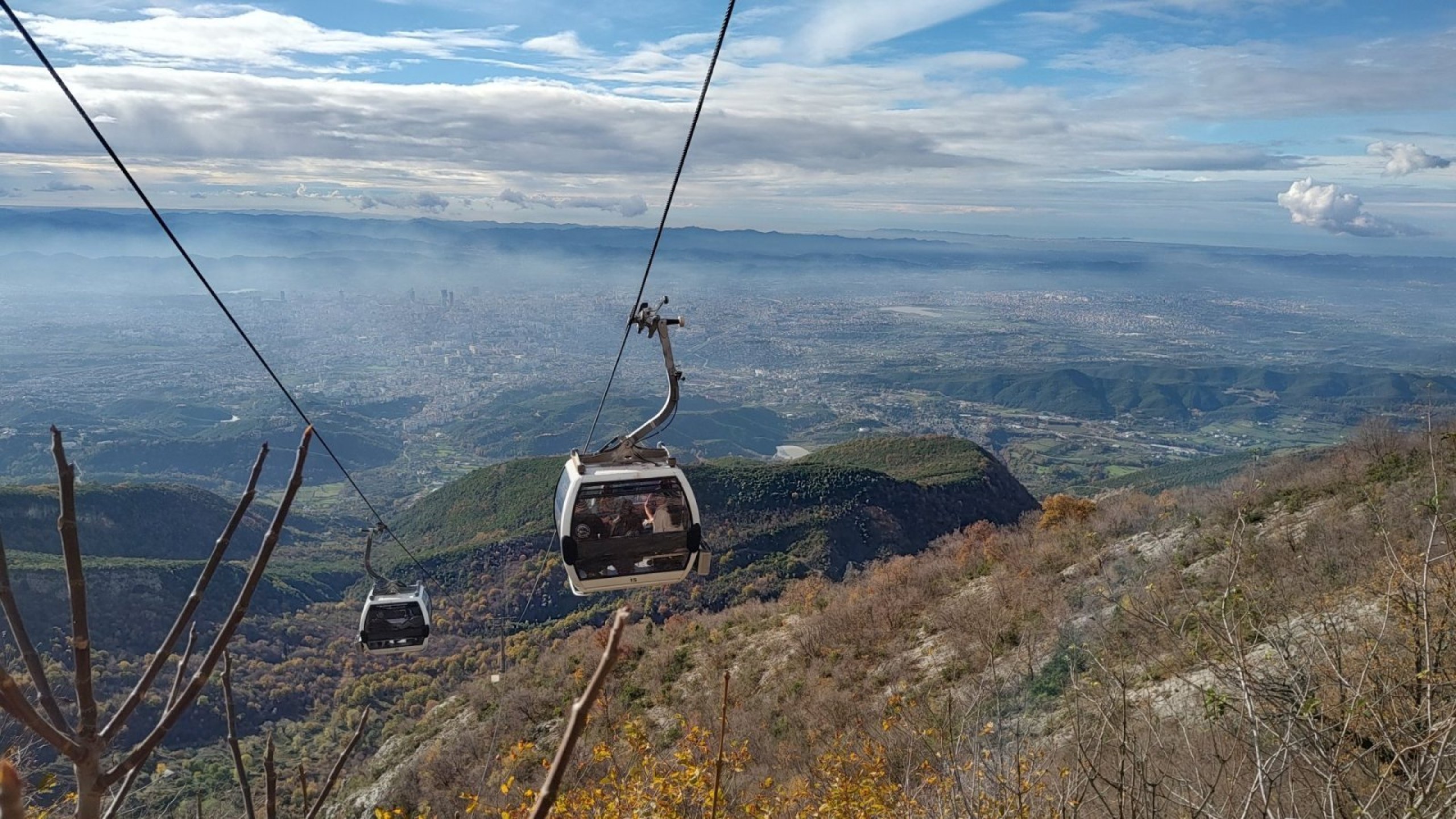 Telecabina vă duce din cartierul rezidențial Porcelani din estul orașului până la aproximativ două treimi din masivul Dajt.