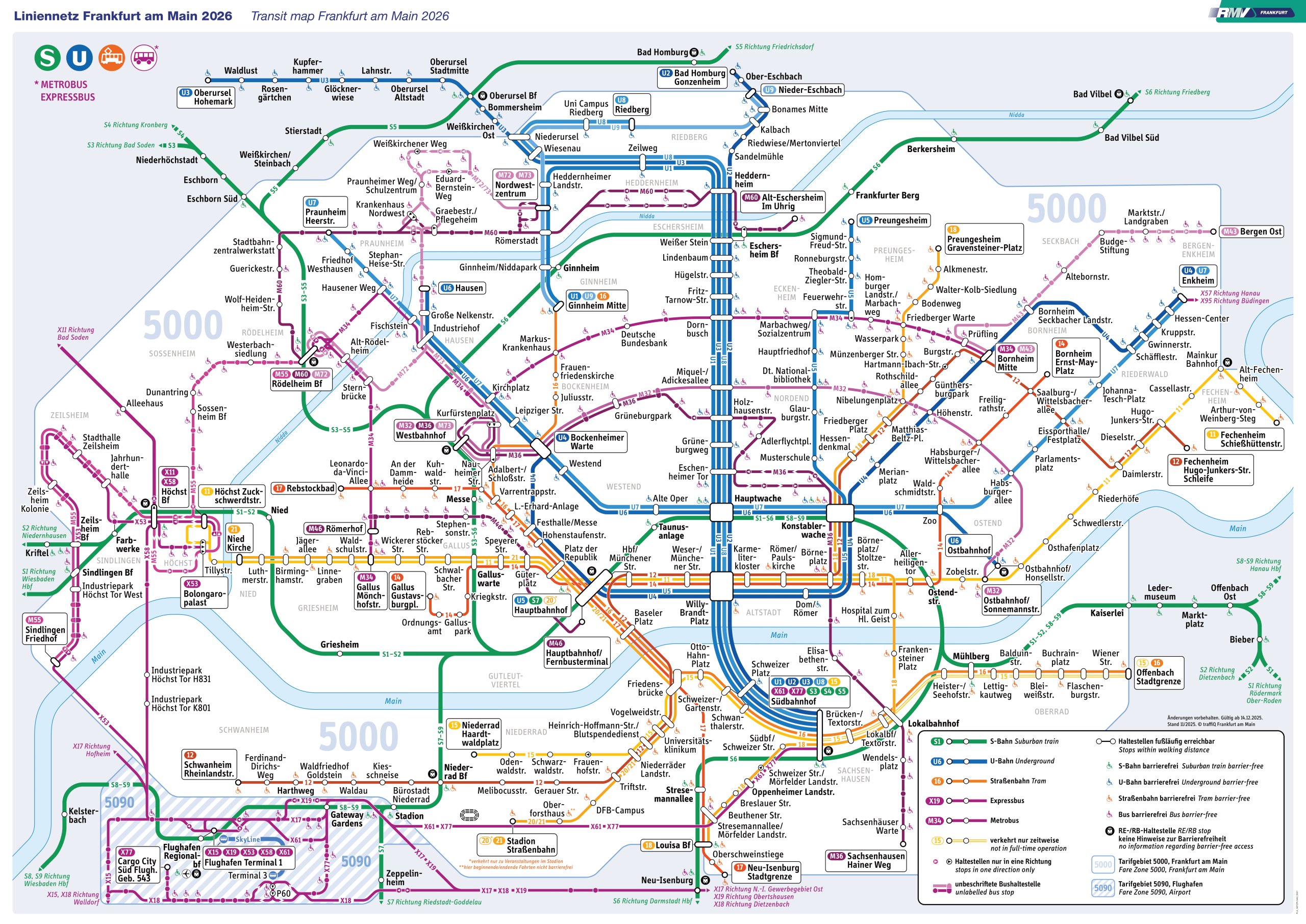 O listă detaliată a stațiilor, liniilor și orarelor poate fi găsită pe site-ul rmv.de.