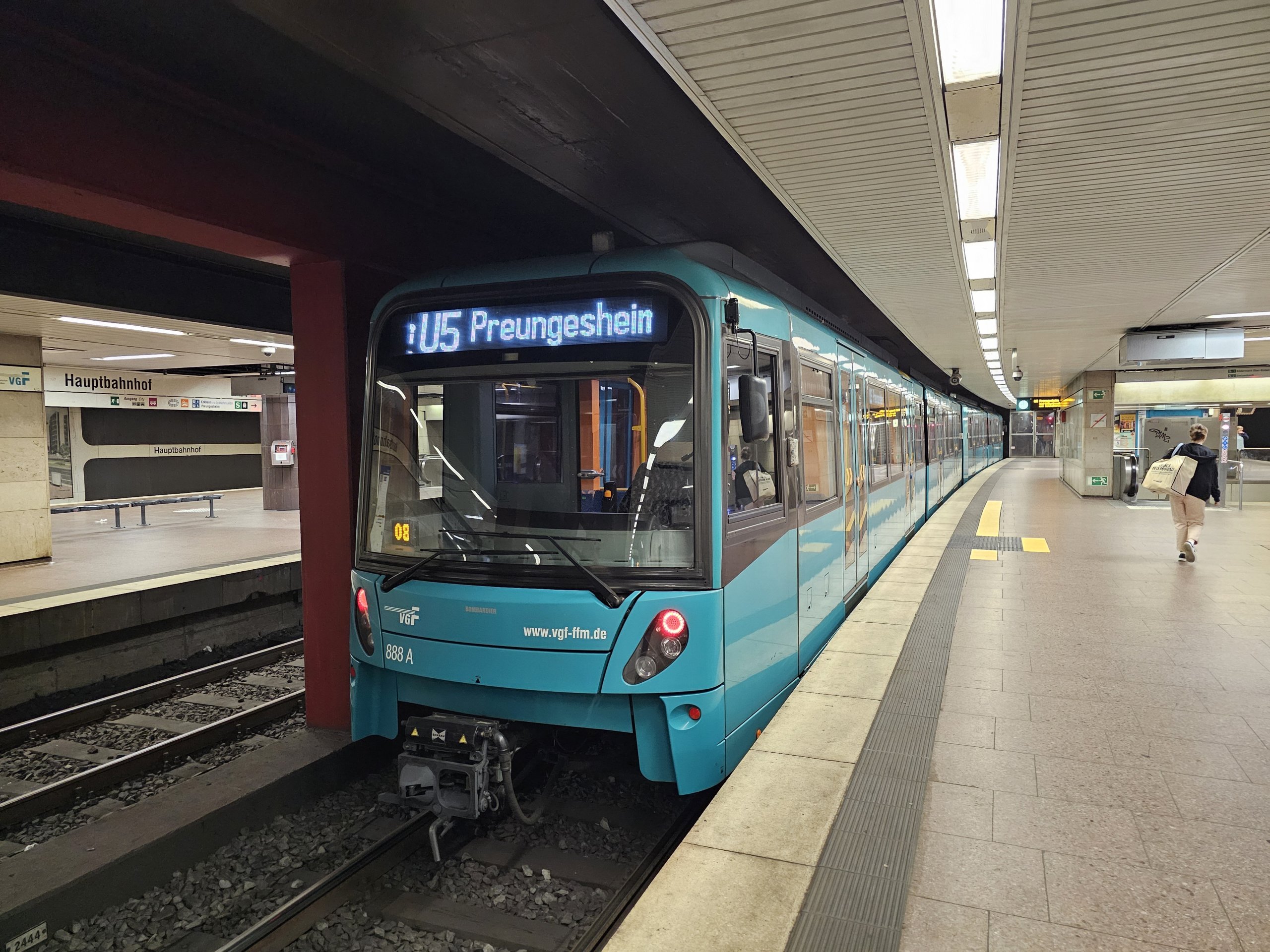 Pentru a vă deplasa în Frankfurt, puteți utiliza metroul clasic (U-Bahn) și trenul urban (S-Bahn).