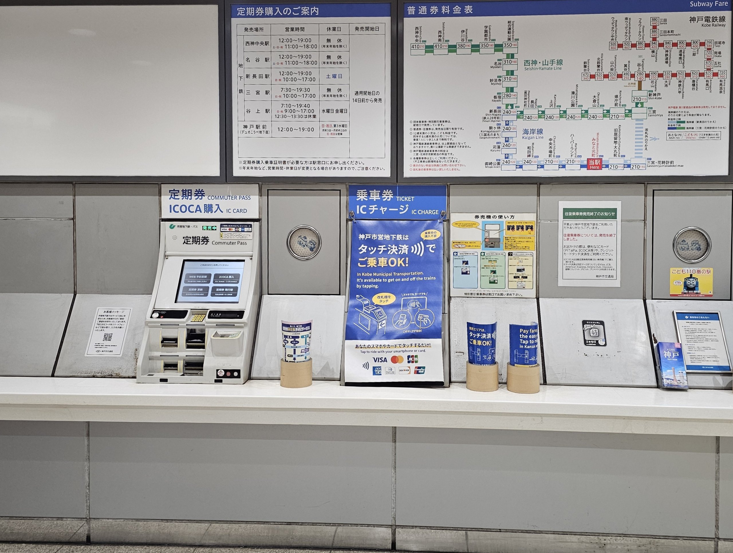 Cardul ICOCA este vândut în Kobe sau Osaka, dar aici puteți utiliza oricare dintre cardurile japoneze naționale, cum ar fi Suica din Tokyo.