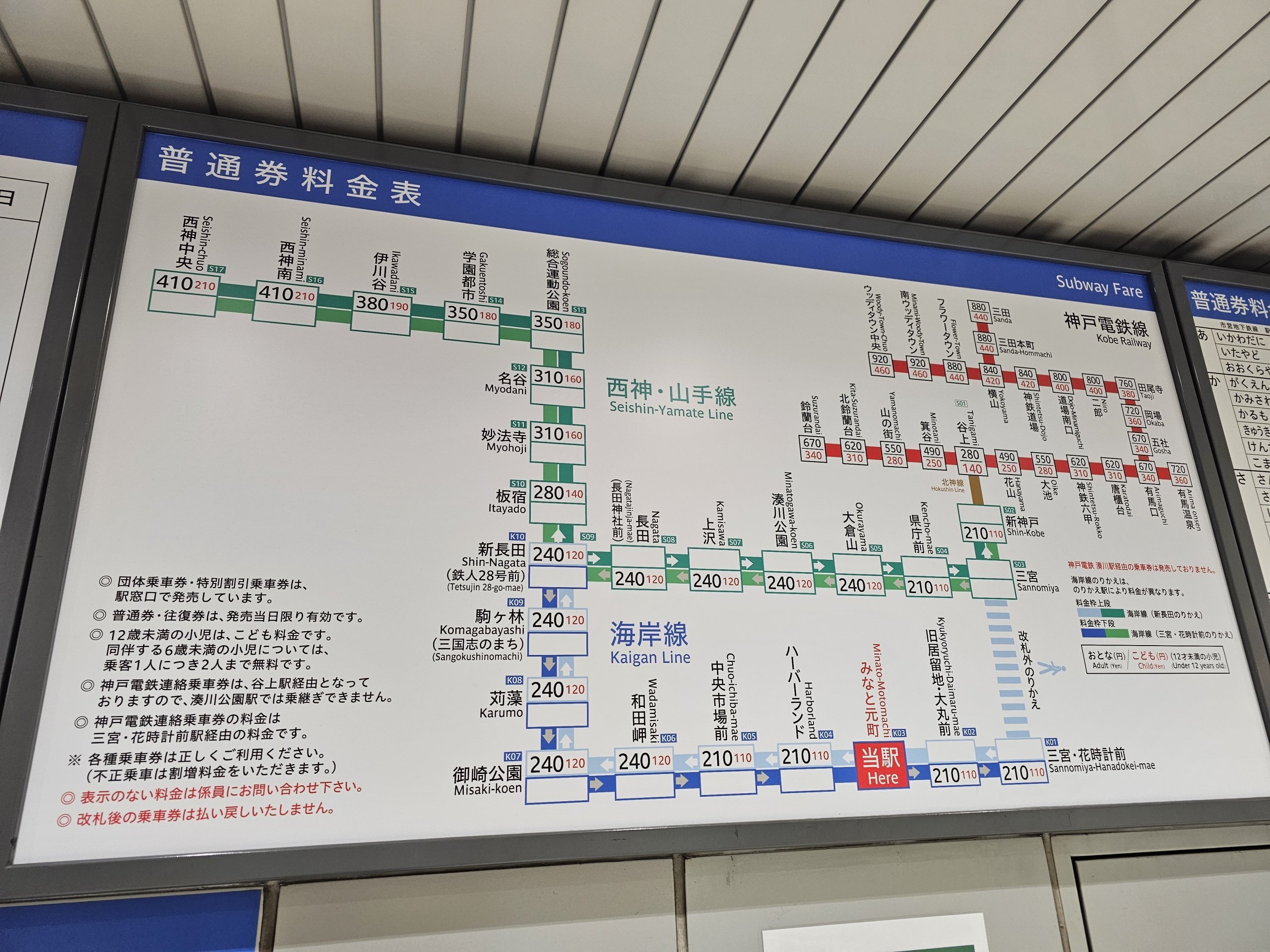 Excepția este zona mică din centrul orașului în jurul stației Sannomiya, unde plătiți doar pentru 1 călătorie 120 jpy.