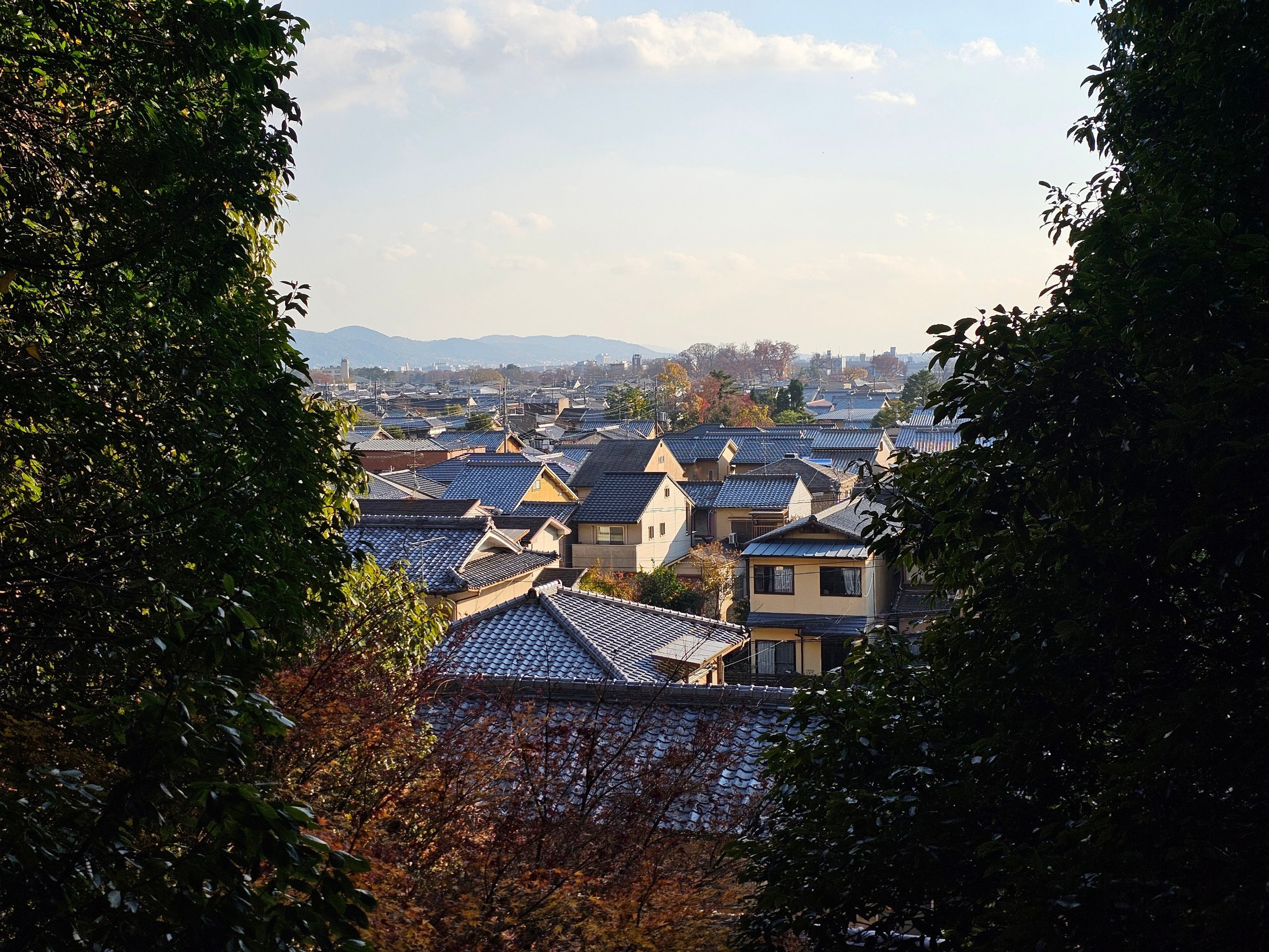 Micul deal oferă o priveliște frumoasă a suburbiilor nordice ale Kyoto.