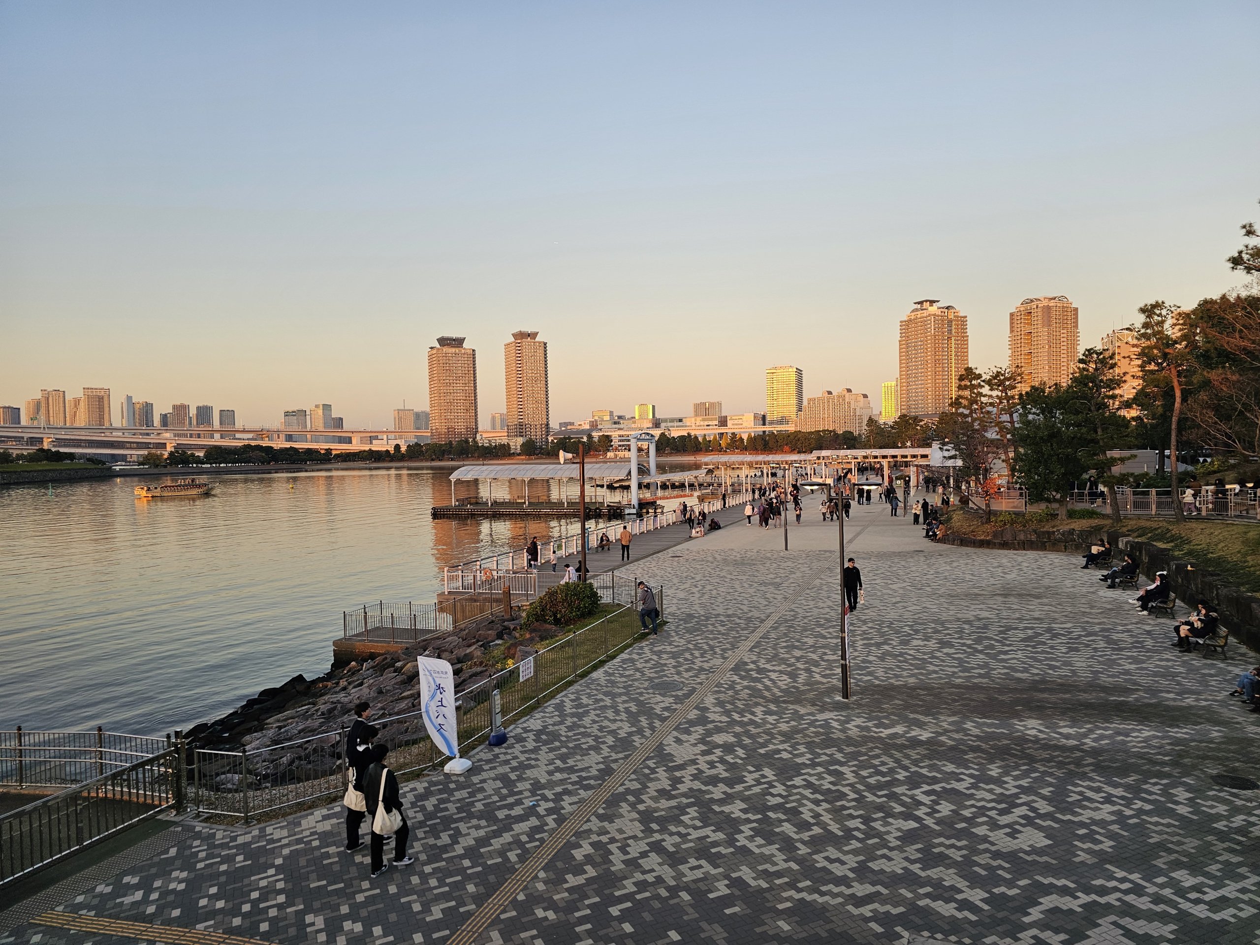 Bărcile navighează în mod regulat spre cheiul Asakusa, care se află în apropierea celebrului templu Sensoji. Pentru un orar detaliat și tarife, vizitați suijobus.co.jp. Puteți cumpăra un bilet pentru barcă de la casa de bilete de pe promenadă.