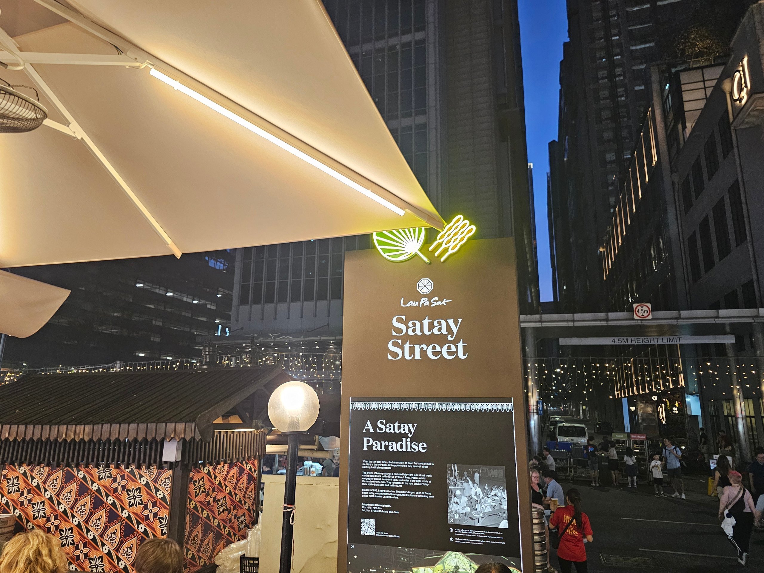În timpul zilei, Lau Pa Sat este mai mult o cantină obișnuită pentru lucrătorii de birou. Atmosfera adevărată apare seara, când se deschide Satay Street.