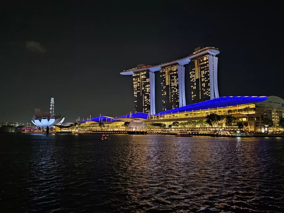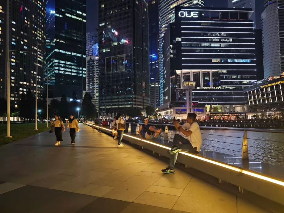 Frumusețea sa este evidențiată în special de iluminarea nocturnă a zgârie-norilor, de Hotelul Marina Bay Sands, care are o piscină de renume mondial pe acoperiș, o roată Ferris și statui de lei de-a lungul golfului.