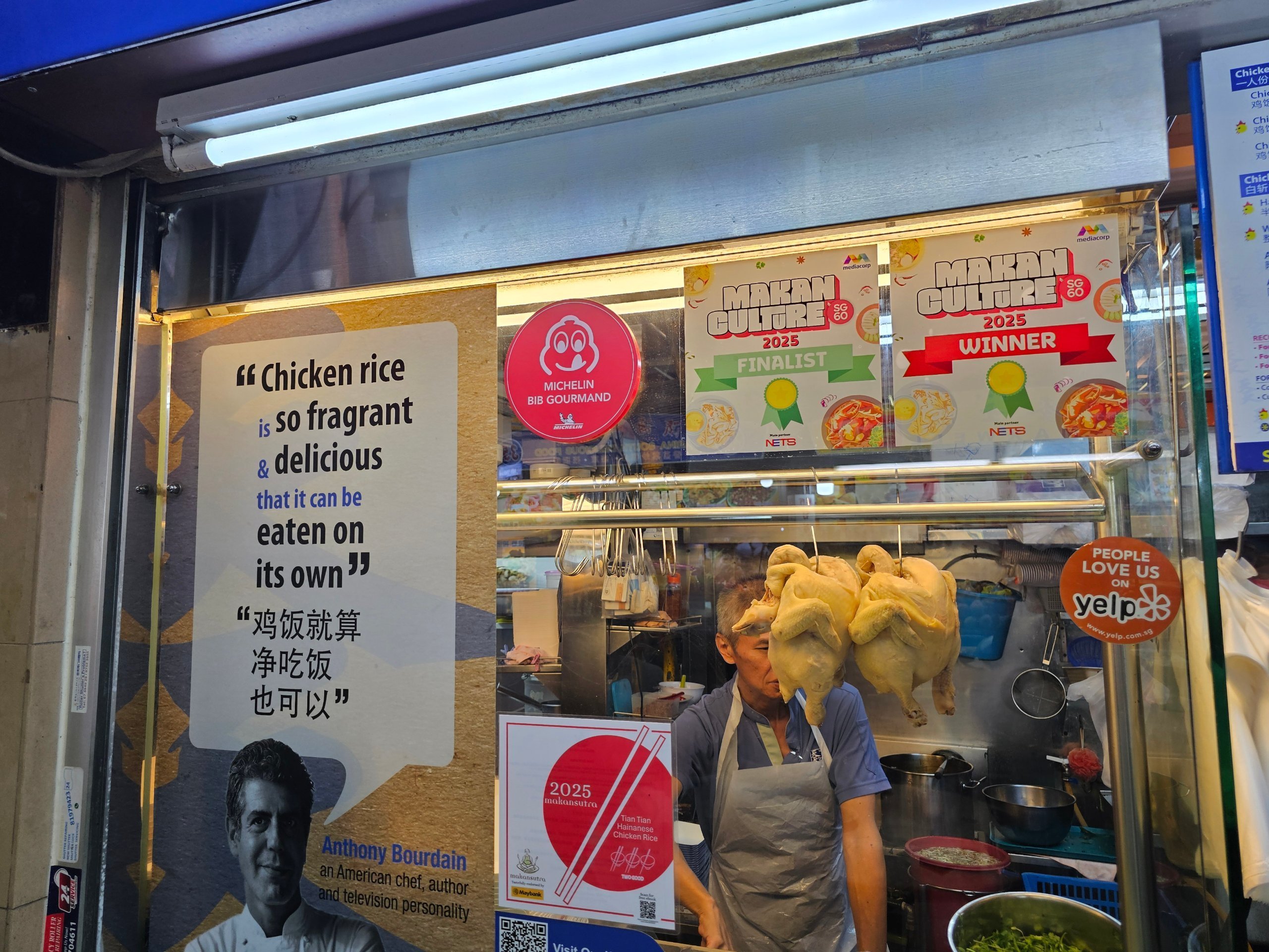 Unele standuri din centrele hawker, de exemplu, au un premiu Bib Gourmand, pe care Michelin îl acordă pentru mâncare excelentă la un preț accesibil.