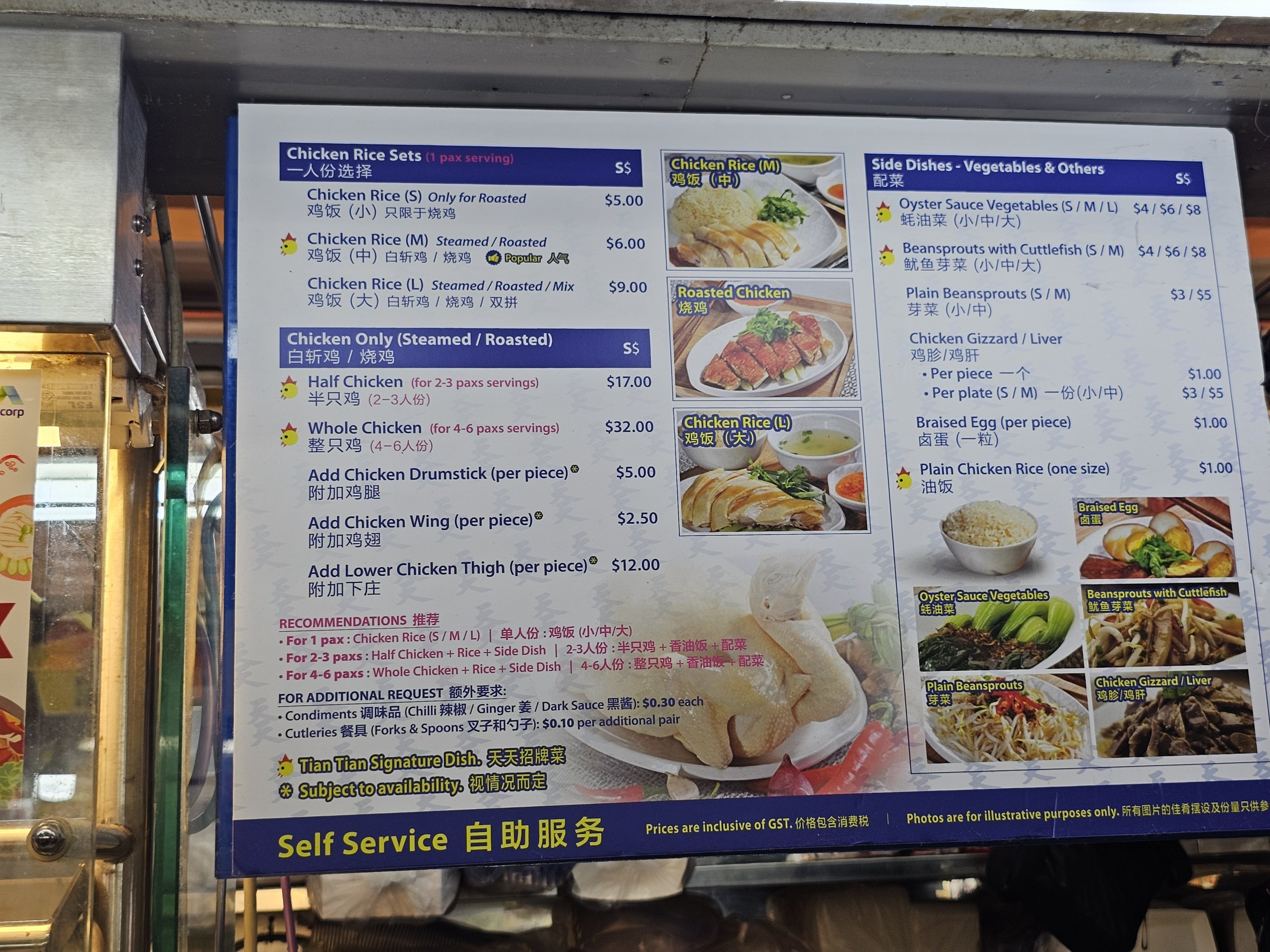 Cea mai faimoasă dintre acestea este Tian Tian Hainanese Chicken Rice, care este una dintre cele mai populare tarabe din întregul Singapore. Aici puteți degusta faimosul orez cu pui Hainanese, un fel de mâncare adesea numit unul dintre felurile de mâncare naționale din Singapore.