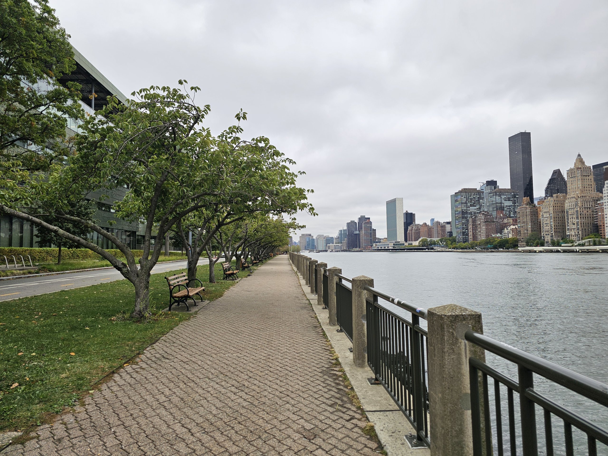 Roosevelt Island este o oază de liniște mai mult sau mai puțin în mijlocul orașului New York, iar de-a lungul ambelor părți ale insulei există frumoase poteci lungi pentru plimbare, perfecte pentru alergare.