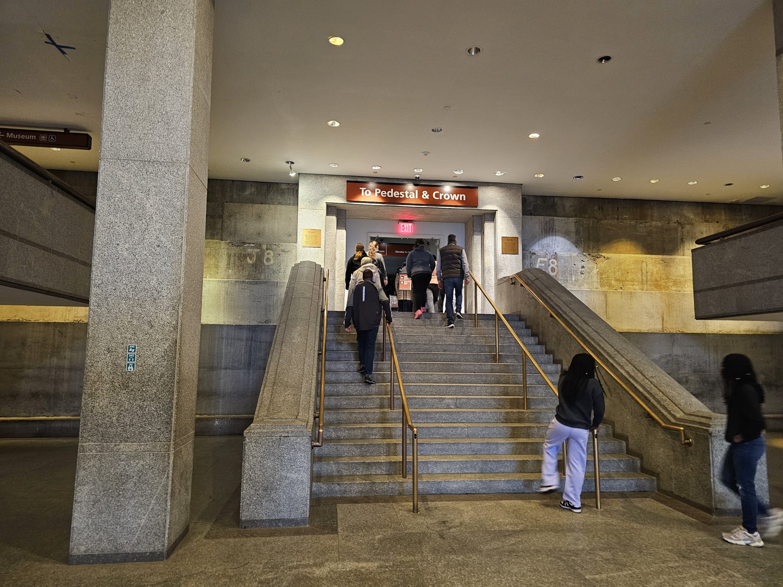 Sunt 215 trepte de urcat pentru a ajunge la platforma de vizionare a piedestalului și alte 162 de trepte foarte abrupte pentru a ajunge la coroană.