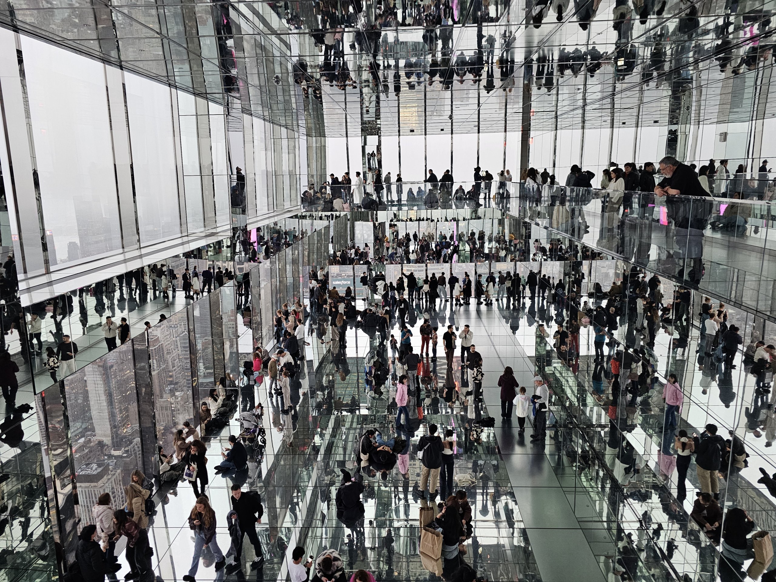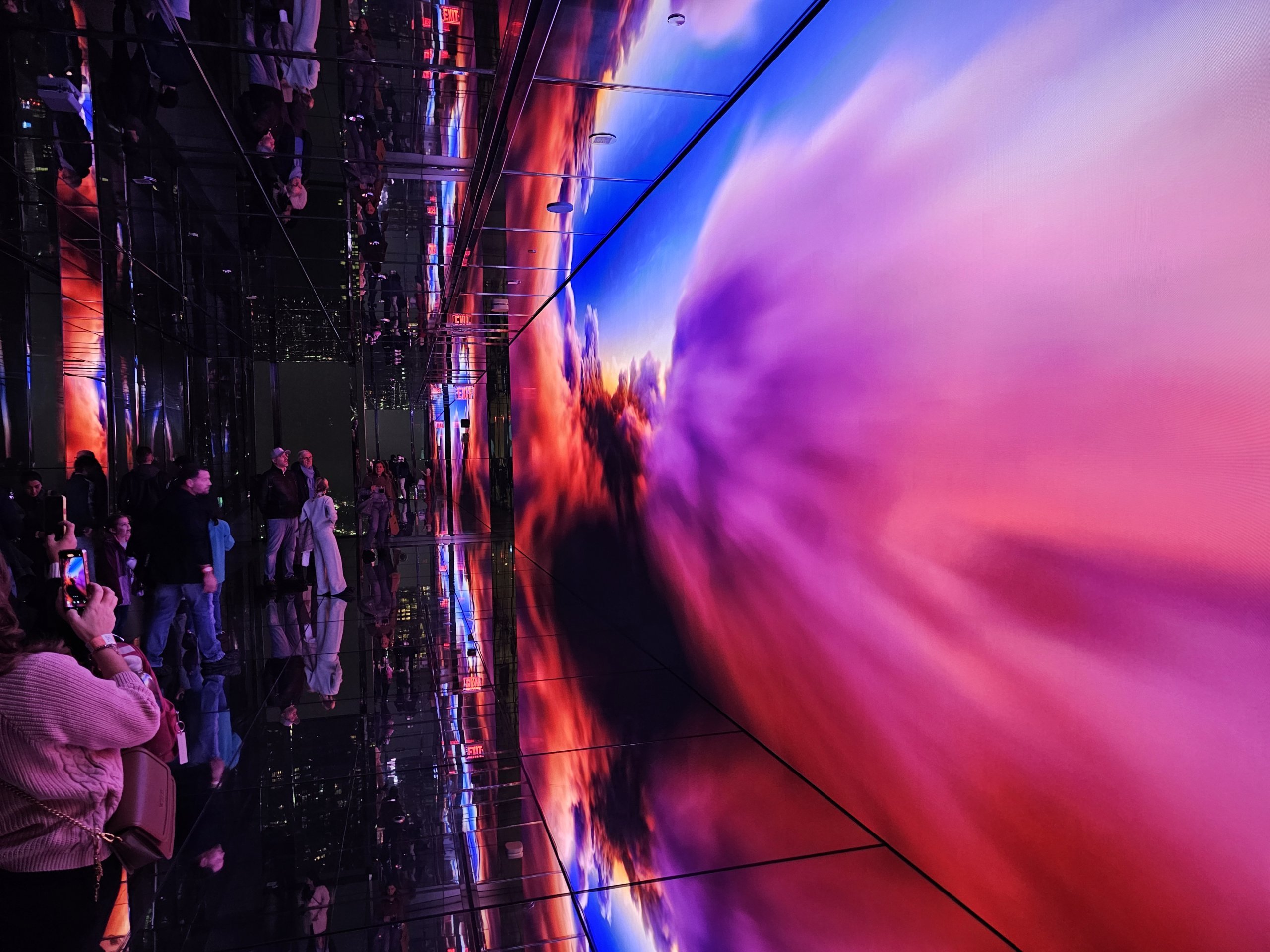 Într-o cameră adiacentă, un ecran mare folosește fotografii ale oaspeților făcute la intrare pentru a crea un mozaic digital. Acesta simbolizează faptul că, deși linia orizontului din New York este iconică, adevărata magie a orașului constă în oamenii care locuiesc aici și o vizitează în fiecare zi.