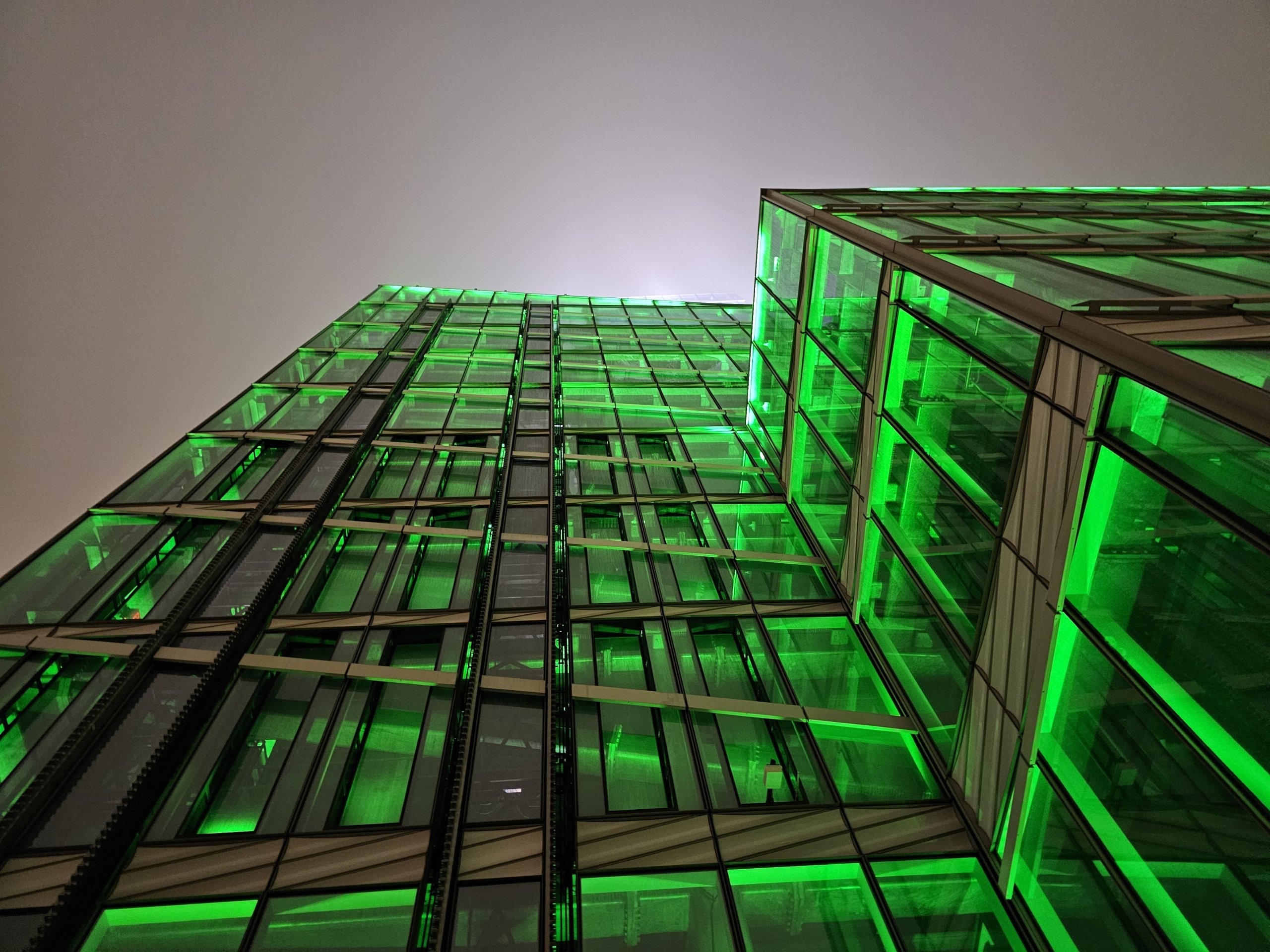 Ultimul etaj conține un restaurant, un bar și o mică terasă în aer liber, dar, la fel ca spațiile interioare, vederea de pe această terasă este doar prin sticlă.