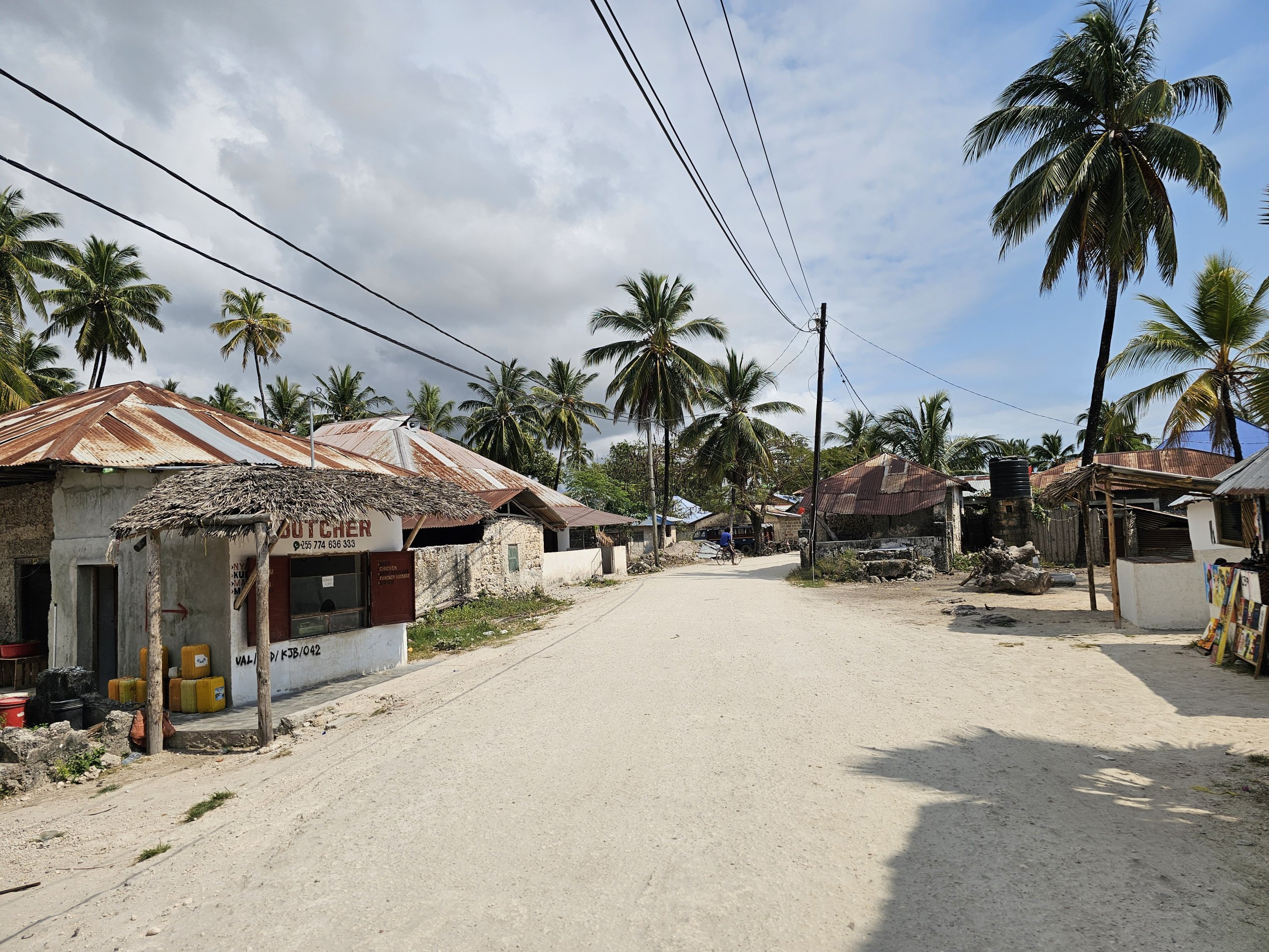 În afară de banda de hoteluri de pe plajă, Jambiani este un sat foarte sărac și local, străbătut de un drum de pământ.