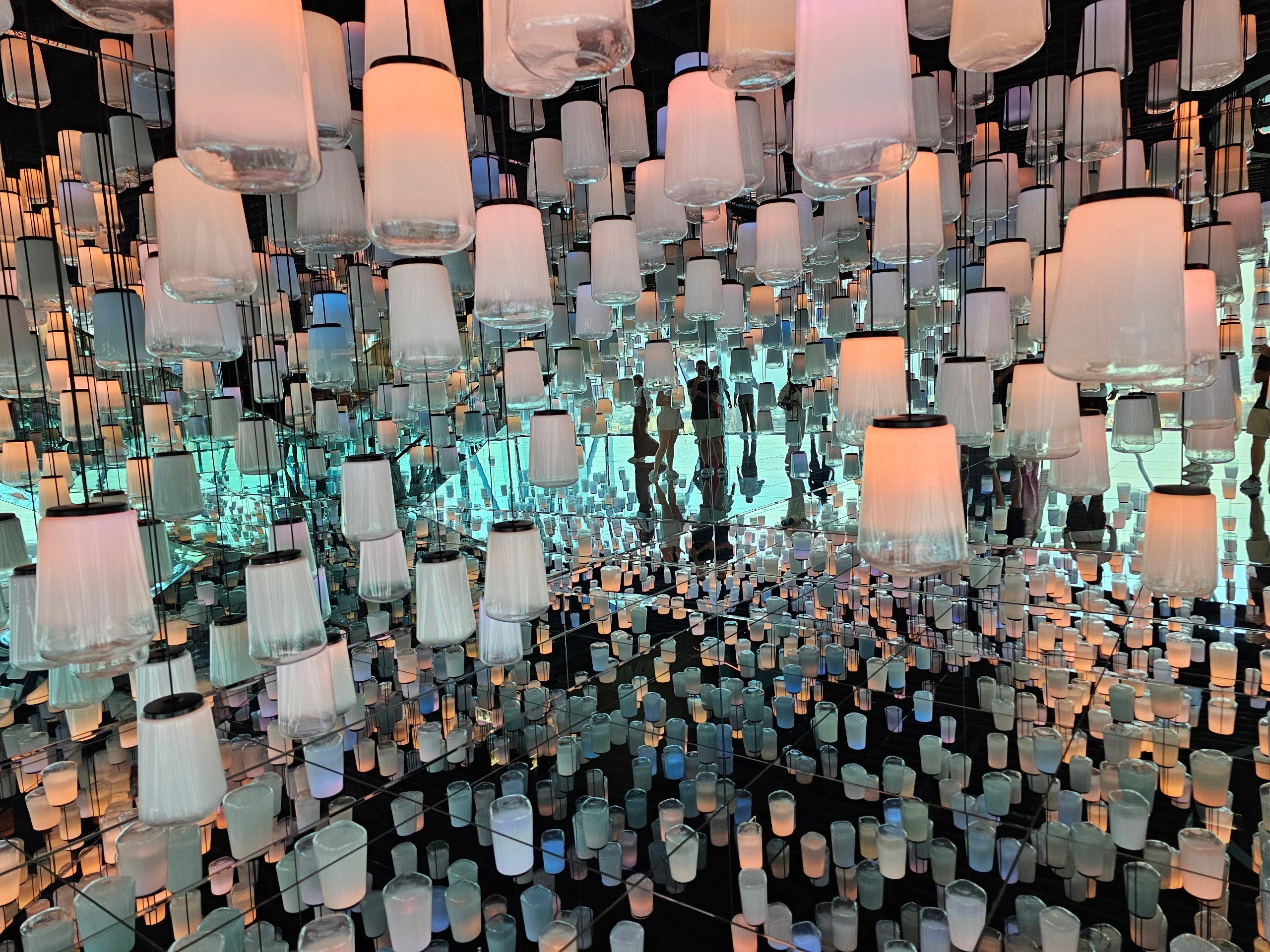 O instalație inspirată de tradiția lanternelor, în care efectele de iluminare creează senzația de spațiu infinit.