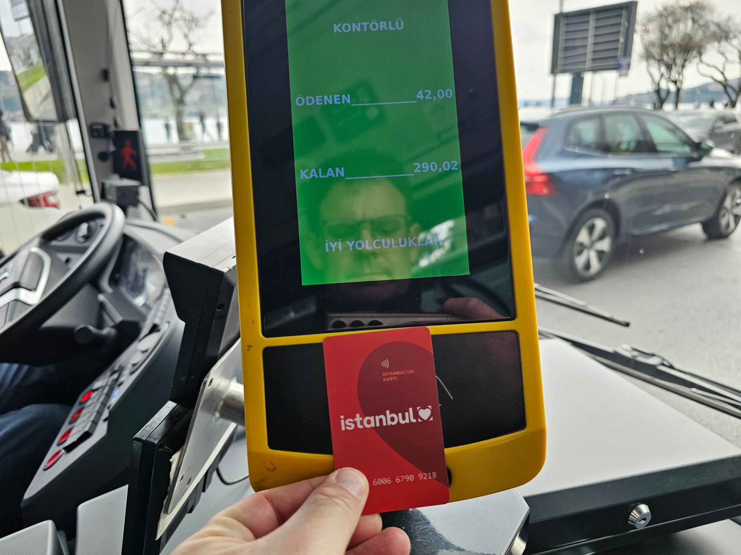 În apropierea șoferului există un validator, la care atașați un card Istanbulkart sau propriul card contactless.